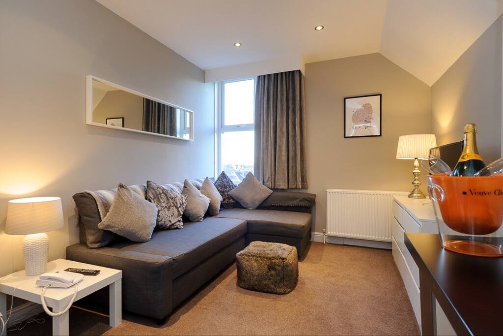 You are booking a studio which is a double bedroom with en-suite bathroom with walk in shower. The room has a small kitchenette with everything you need for basic cooking requirements during your stay & a small dining table & chairs. These are not apartments but studios & are ideal for business or leisure. A self service room with access to all linen & cleaning products & equipment during your stay. If you would like us to service your room we charge £30. Let us know the day before please.