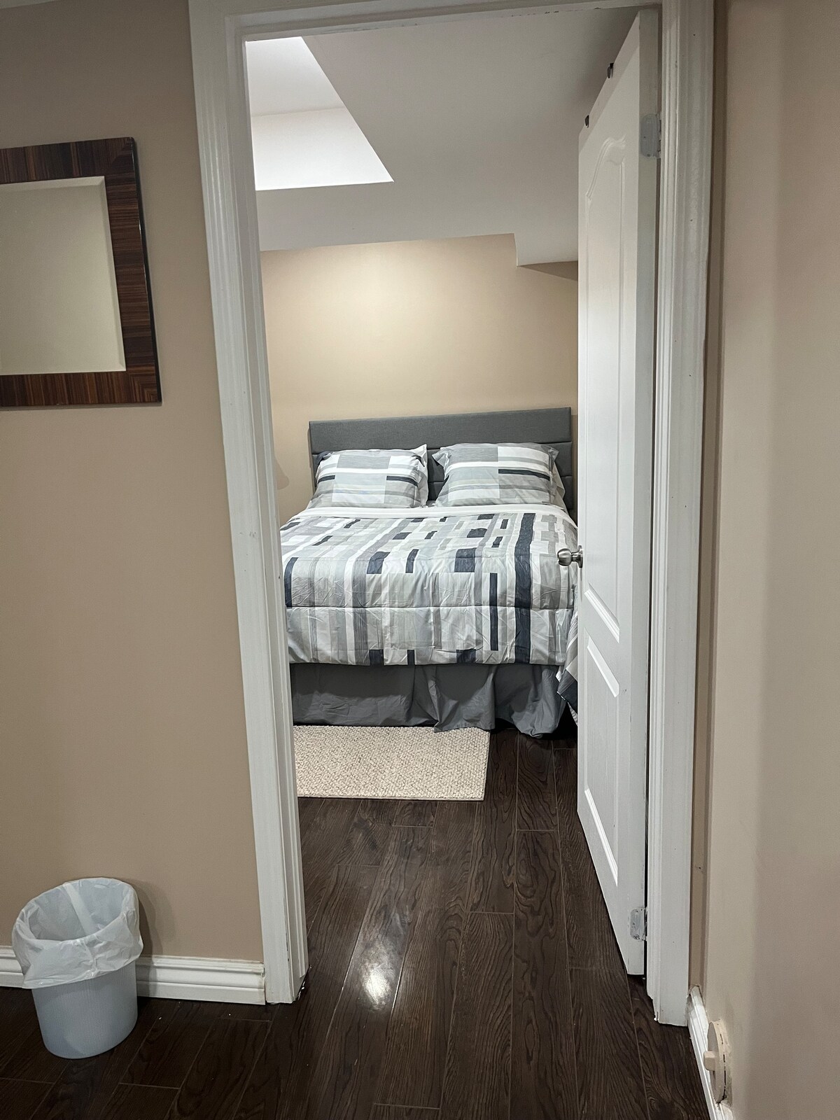 Welcome to New Toronto! Driveway parking included next to entrance. Large -Cozy basement apartment in lakeshore village, Lake Ontario is at the end of the street. Beautiful skyline view of downtown Toronto , Full kitchen with stove and oven. Large dining room table. Comfortable L- shaped couch. One bedroom with queen size bed. Washer , dryer, laundry facility. WiFi Netflix, Prime video, Book a month or longer stays , bring your pet.