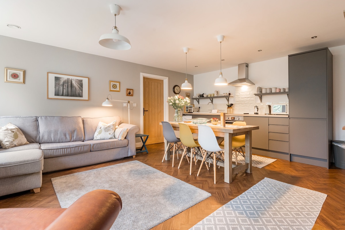 Nestled in a small hamlet of houses along a quiet country lane, The Mews at Higher Meadow House is a calm and peaceful retreat overlooking the River Tame. The Mews is the ground floor apartment of Higher Meadow House, which was newly constructed in 2019. It is a stone’s throw away from the historic heart of Delph village with its shops, cafés, pubs, art galleries and links to other villages of Saddleworth as well as the town of Oldham and Manchester.