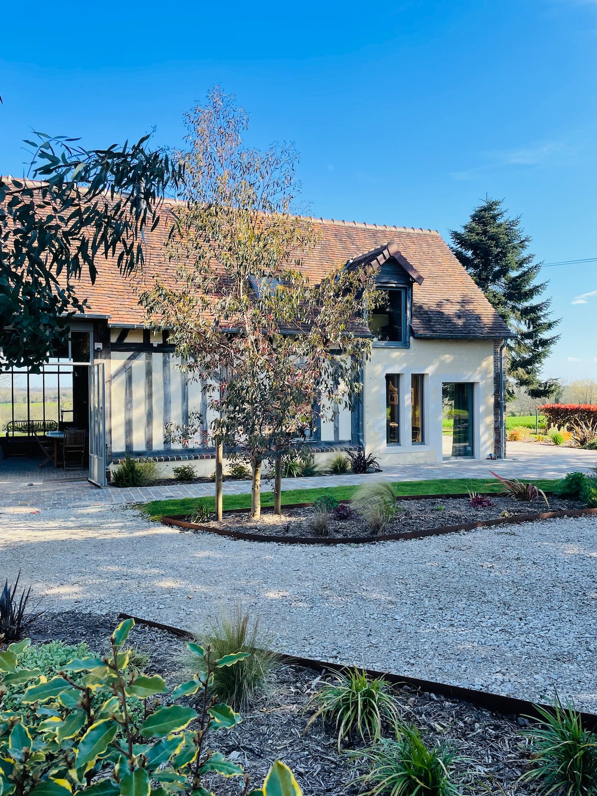 Come and experience the beauty, simplicity and calm of the Percheron countryside in a carefully decorated house. In a small independent house, on our 2 ha property, you can enjoy our beautiful garden as well as the view of the countryside while being in your little cocoon. We fell in love with Perche and renovated this little piece of heaven: La Grande Maison for us and La Petite Maison for our guests... so that you too can experience the Perche Effect!