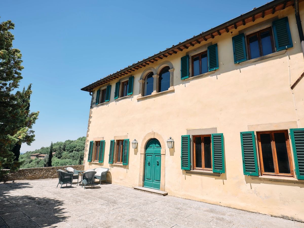 This wonderful recently restored 5BD villa is located in the heart of the Chianti region, just steps away from the town of Greve. The villa traces its origin back to the 1300 and has recently been tastefully renovated and exquisitely furnished. The careful attention to details by the owner, who has owned the property for more than 35 years, contributes into making this villa a truly unique place with a very sophisticated, cozy and elegant atmosphere. From the villa it is possible to enjoy the most lovely views on the typical Tuscan landscape, full of vineyards, olive groves and cypress peaked hillsides. The garden of the villa is always perfectly kept and features plenty of outdoors furniture for the 2 covered verandas as well as for the pool area... Which makes it perfect for relaxing, and enjoying the views with a glass of wine or for al fresco dining (a large barbecue is available). The private swimming pool (size 45 x 19 feet) overlooks wonderful views of the typical Tuscan countryside and comes fully furnished with lounges and shaded areas. Location. The villa is located nearby the heart of the village of Greve in Chianti as well as just a few minutes away from the beautiful medieval village of Montefioralle. To reach Montefioralle, which is one of the most ancient villages in the Chianti area and is considered one of the most beautiful villages in Italy, you can just travel by foot (about 4 minutes). The original name of this village was "Monteficalle," referring to the fig trees that grow in the fields around the castle... here you can find two great restaurants (one with outdoor seating) offering some of the best Tuscan specialties as well as a fabulous winery. To reach Greve, which is often considered as the “entrance gate” into the Chianti region, you can travel from the villa by foot (about 10 minutes walk), by bike, or by car (3 minutes drive). The beautiful main square of Greve, Piazza Matteotti, is the focal point of the town, where there are several excellent restaurants such as: the Osteria Mangiando Mangiando, the Bottega del Moro or the Osteria del chianti classico as well as many other typical grocery stores, artisan shops and the famous Antica Macelleria Falorni (a Tuscan butcher that has been in the same spot since 1729). Nearby the square there is also a large supermarket. Description of the interiors. The villa features 5 charming bedrooms and 4 bathrooms in total, so it can comfortably accommodate up to 10 guests. Ground Floor: The villa's main door opens into a sitting room followed by a large living room with a fireplace and TV (with satellite channels). From the entrance sitting room there are a few stairs to reach the first bedroom (with two twin beds) and an ensuite bathroom (with shower). The dining area is directly connected to the outdoor veranda (that comes fully furnished with sofas and very comfortable furniture) and to the private garden. Next to dining room is the spacious and fully equipped kitchen that comes with a large wood dining table (that seats up to 10 guests). First Floor: Halfway up the stairs from the ground floor's living room going to the first floor, there is a double bedroom (with two twin beds) with attached bathroom (tub and handheld shower). On the first floor there is another bedroom with two twin beds and a King bedroom that shares a bathroom with a shower. At the end of the first floor's corridor there is the magnificent master bedroom (with King bed) with the ensuite bathroom with tub (and handheld shower). The villa is air-conditioned.