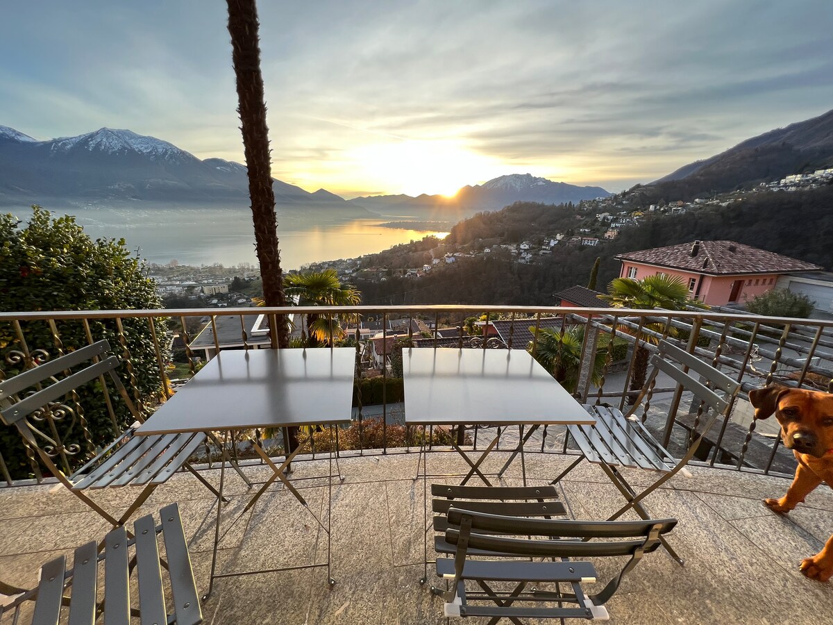 From the house you have a fantastic view towards Locarno/Ascona over Lake Maggiore. The house, newly renovated and in a quiet location, has a large garden on several levels, a pergola and various seating areas. A wonderful pool is available for shared use with the host family. Parking is available, but also easily accessible by public transport, next bus stop 10min walk. It is an excellent starting point for wonderful hikes and excursions into the Verzasca Valley.
