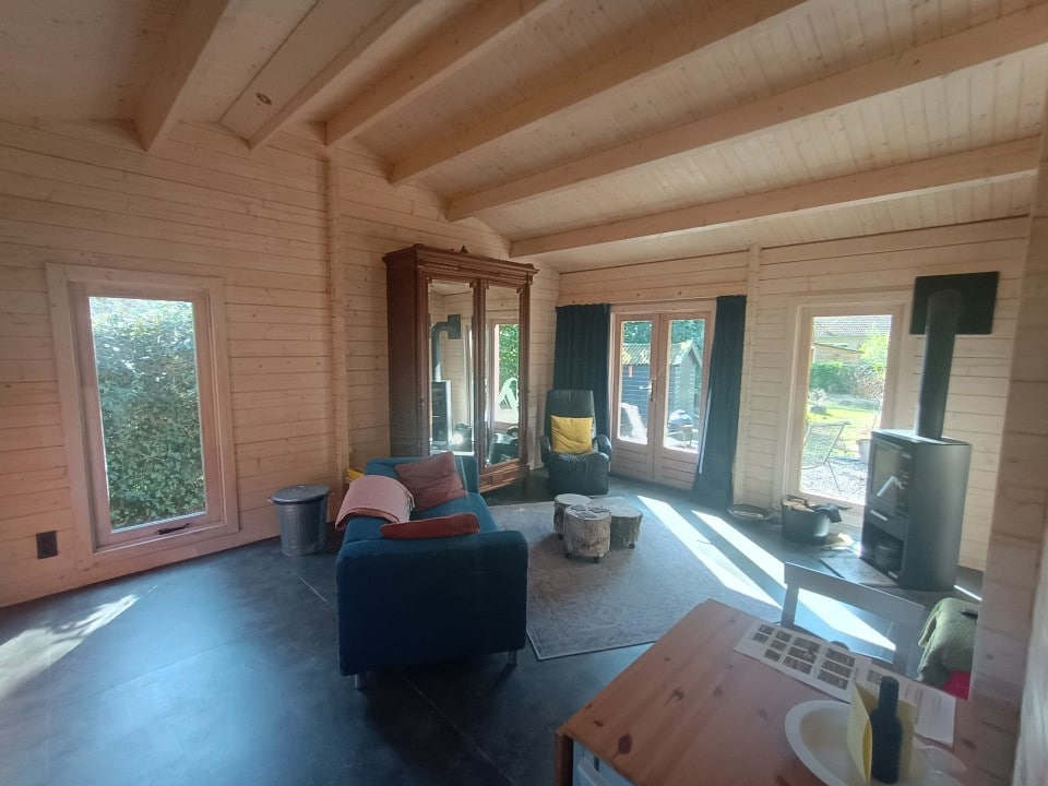A beautiful, self-built, log cabin, furnished for 2 people. It is located in the Stavasterbos, a small park, near Lochem. The log cabin has one double room with a 1.80 wide bed with 2 duvets. The cottage has a garden of approximately 350 m2. There is a bistro in the park. There are no other general amenities. The cottage is 3 km from the city center and is adjacent to a beautiful forest area. There is a small shed available to store 2 bicycles if necessary.