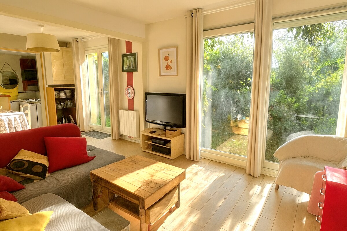 Small single-storey house (35 m2) with terrace and car parking located 10 min walk to the beach and the city center. Close to all shops. Free high-speed Wi-Fi and air conditioning (with small surcharge in summer). Fully equipped accommodation (including TV in the living room and bedroom) Tassimo filter coffee maker No pets allowed Linens provided Please note that cleaning must be done by guests, as we do not charge a fee Barbecue prohibited