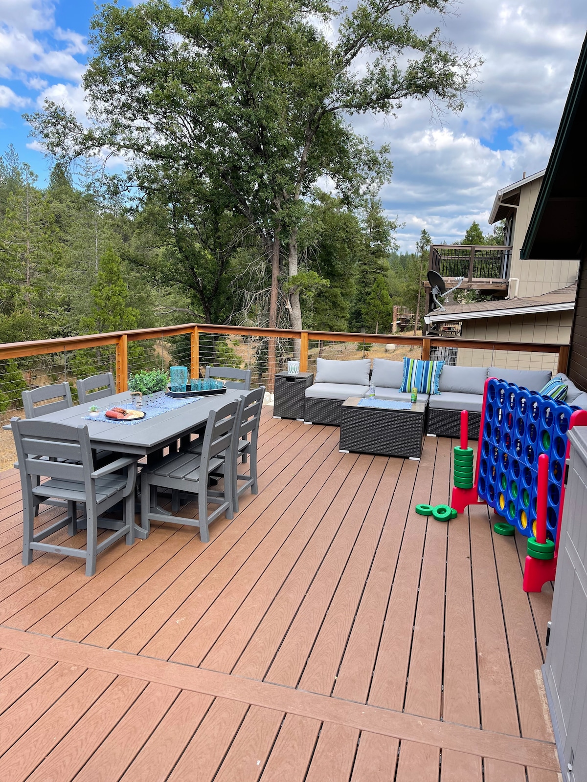 Welcome to Skyridge, a cozy 4000+ square foot, 4 bedrooms 4 baths retreat nestled on 3/4 acres of lush, land in the Gateway to Yosemite town of Groveland, CA, we offer a one-of-a-kind experience of lake views for up to 12 guests. Only 26 miles away from Yosemite National Park’s Big Flat Oak Entrance. Get your morning coffee in the deck and let the sounds of the surrounding nature get you in the mood of planning your hiking adventure at nearby Yosemite or a walk down the lake's beach.