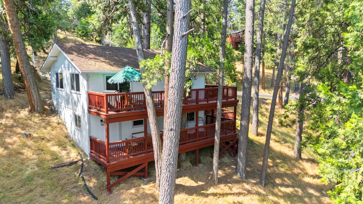Make memories at our unique and family-friendly chalet cabin. This beautiful cabin is in a secure gated community 25 miles from the entrance of Yosemite National Park. Within our community, enjoy the private lake and beach area with a marina, boat rentals and cafe. Also, 18-hole golf course and Grill, Seasonal Pool and hiking trails. Our Cabin has 3 bedrooms, 2 lower, and 1 large loft bedroom. Downstairs Full Bath. Upper 1/2 bath Note - One time community fee of $50/ car upon entering.
