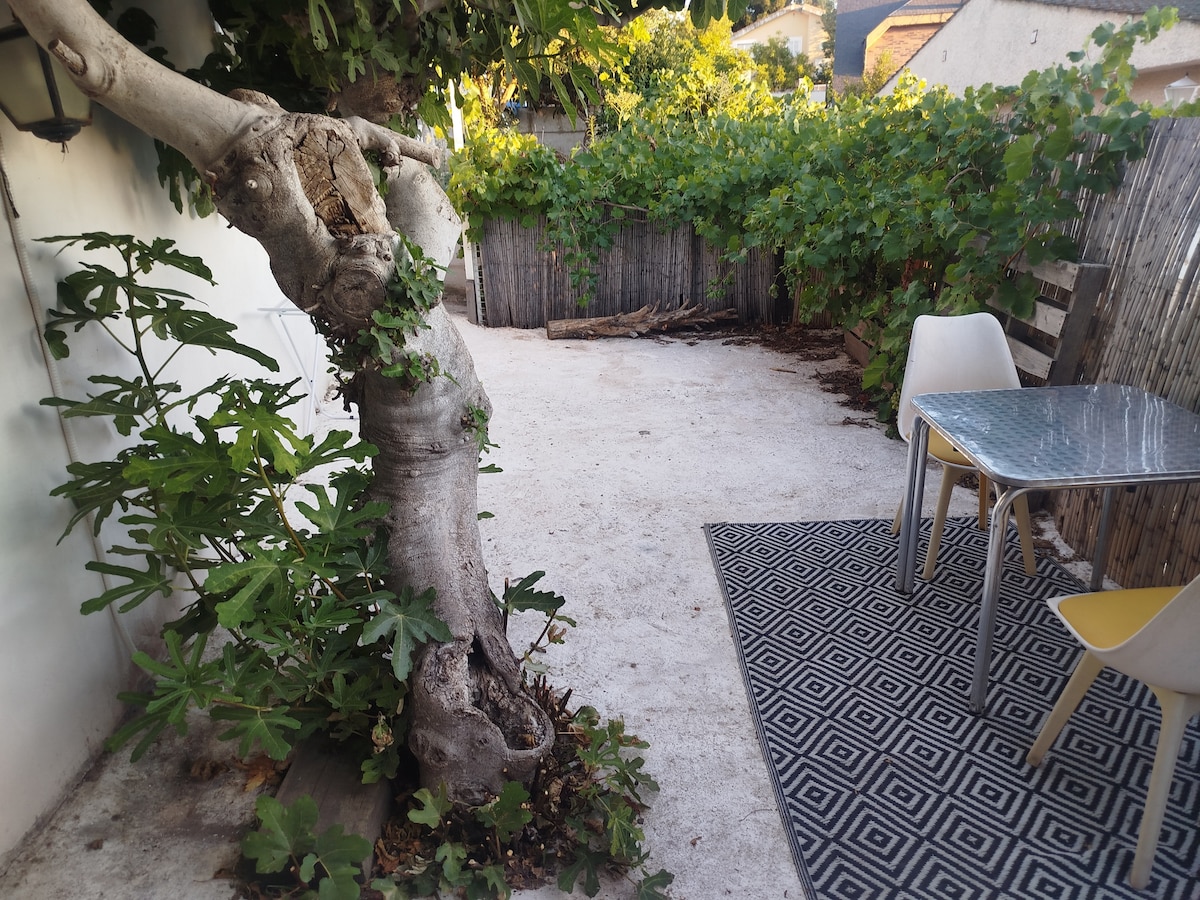 Cozy independent apartment with kitchen-bedroom, private bathroom and patio. Very quiet area 10 minutes from the airport and 25 minutes from Madrid. General services: Air conditioning, heating, Wi-Fi, refrigerator, microwave. Possibility of indoor parking and self check-in. Views of Madrid and sunset. Due to the traveler registration law, in order to accommodate you we need some information that we will request at the time of booking. Thank you very much!