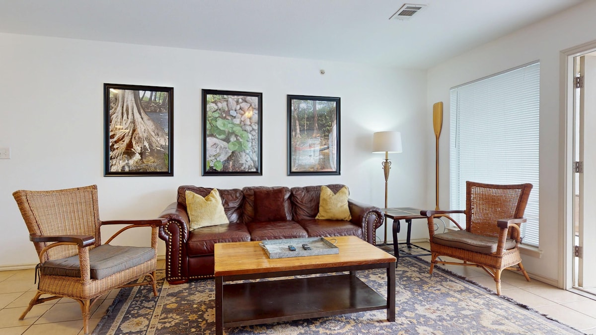 Located in Historic Gruene Texas with stunning views of the Guadalupe River from your private balcony. This spacious three bedroom condo has everything you'll need to feel right at home with high speed internet, cable TV, full washer and dryer. Tucked away on the edge of the Guadalupe River you can enjoy direct river access, lounge by the waterfall pool, or take a stroll to enjoy all the shopping, restaurants, bars, and nightlife that Historic Gruene has to offer.We look forward to hosting you!