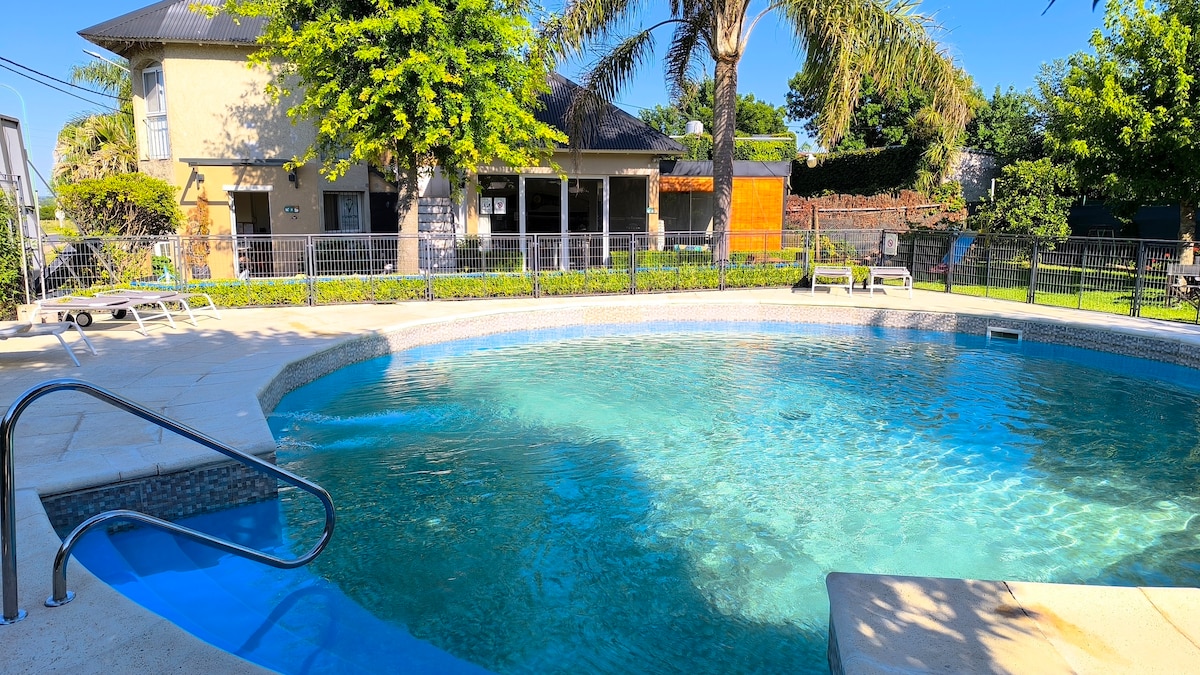 🏡 Welcome to our country house with a heated pool! 🌿 Quiet atmosphere, air-conditioned rooms ❄️, equipped kitchen 🍳, cozy living room 🛋️, patio with grill 🔥 and large green garden. WiFi 📶, TV 📺 and free parking🚗. Book and enjoy the tranquility of Gualeguaychú! 💦 ⚠️ Pool heating is only enabled for stays of at least 3 nights. Please check beforehand.