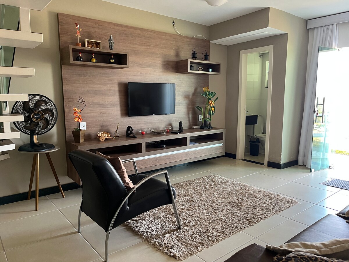 Your rest begins here!! Come and enjoy and relax unforgettable days in this duplex apartment with 2 suites, living room, kitchen and toilet. A cozy apartment located in Escarpas do Lago, in a gated condominium with 24-hour concierge. Enjoy a wonderful view. We hope your stay is amazing, you feel at home and enjoy every moment, relax and recharge your batteries with every detail thought out for your comfort and well-being, a generous and welcoming space for you.