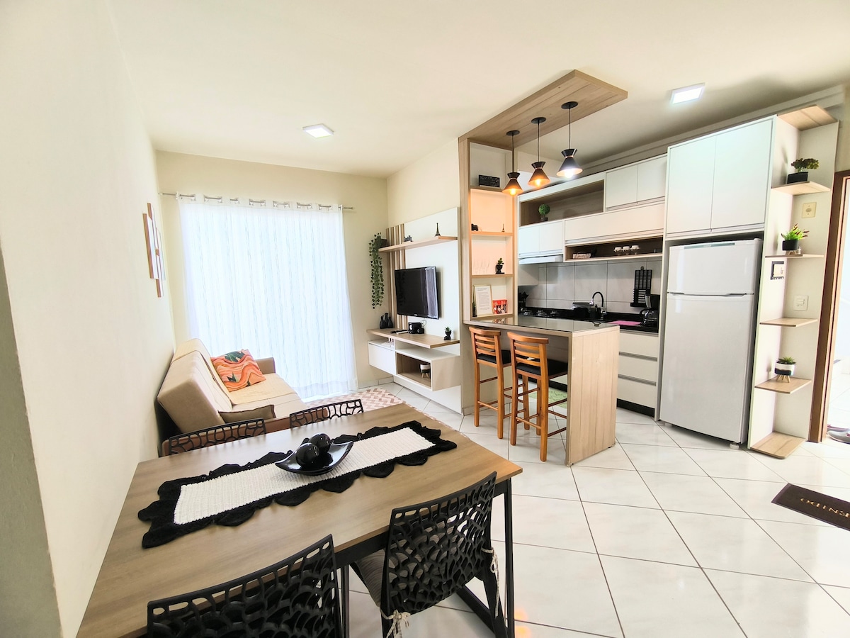 The ap is private, that is, you do not share with others outside of your reservation, it has 2 rooms, but for reservations up to 2 people is only 1 room open, it is located next to Via Verde, near Weg, Bold, Elian, Live,Lunelli…it is 5 minutes from downtown. Enjoy this complete, quiet, comfortable, clean and well-located place.
