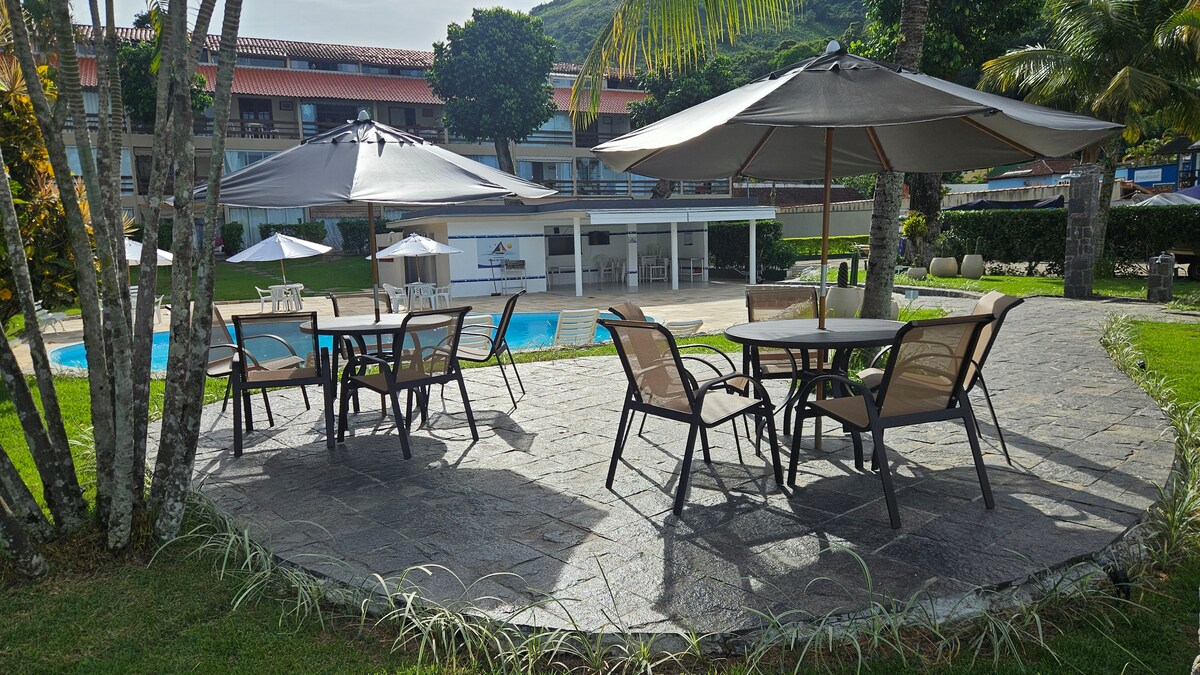 Apartment is located at Condomínio Porto Real Resort. In a great location! In front of the club! It is an area of exuberant beauty that lies between the sea and the mountains of the Green Coast of Rio de Janeiro. The apartment is cozy, cute and comfortable! The condominium has excellent infrastructure that can be accessed by guests, such as: beach, adult and children's pool, sports courts, game room, kids space, saunas, restaurants, etc.!