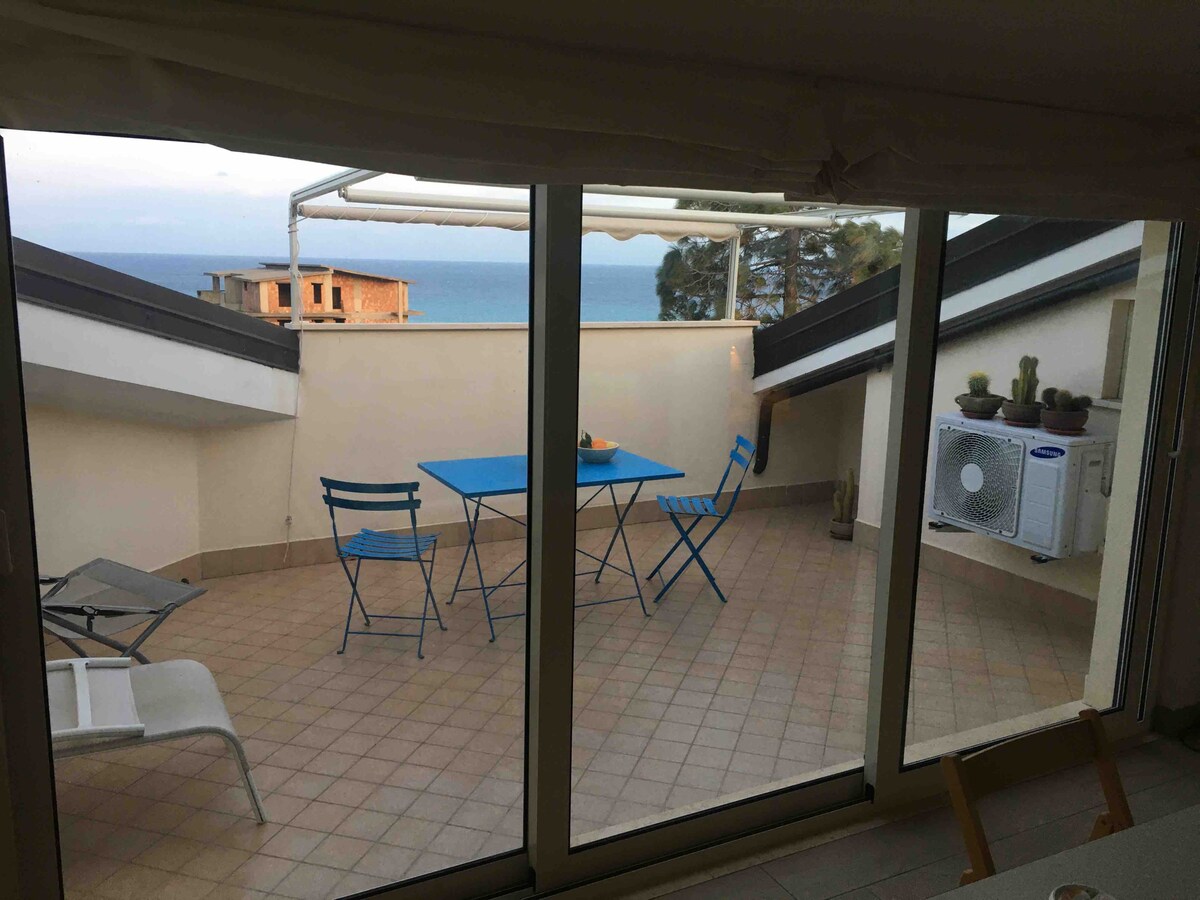 Brand new two-room apartment on the sea, on the first floor with access to a panoramic terrace. The apartment is equipped with every comfort and is fully air-conditioned. Free Wi-Fi. Bedroom with wardrobe, kitchen with double sofa bed, bathroom with shower, access to the terrace. Bed linen and towels are included in the price for a minimum stay of 3 nights. The apartment is a few meters from a large free beach and the main refreshment points, as well as amenities.