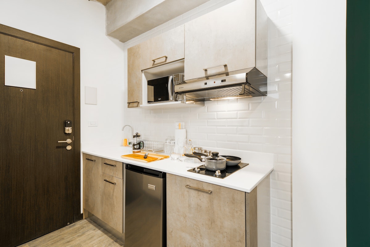 modern, minimalist, practical. 8 minutes to major malls and fancy restaurants, 15 minutes to international airport. Fully equipped kitchen. wifi, TV, spotify, netflix. Laundry with washing machine. Outdoors with lots of trees, plants and a bonsai collection. There´s also a little gym with basic equipment
