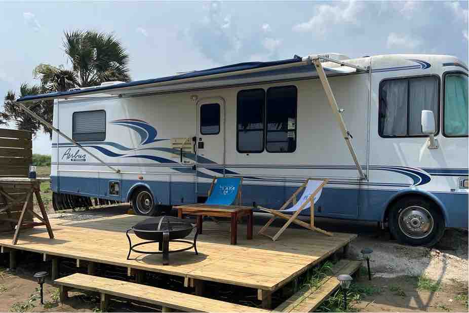 Take a roadtrip to the beach- without driving! Stay and relax in our beautiful 36' classic motorhome nestled a stone's throw from the Pacific ocean. Relax on your private patio and soak in the outdoor shower, or head on over to Playa 14, which is 100 meters away and included in the price of your stay. In this paradise you can wander desolate beaches, hang in one of the many pools, or just take some "me" time to unwind and recharge.
