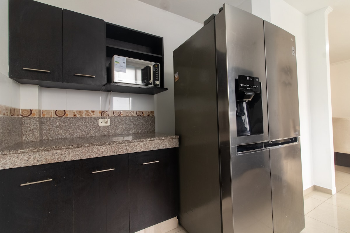 Located on the road to Samborondon within a private development. The Suite consists of a 2.5-seat bed (Queen Bed). The TV is 40 inches (Netflix included). Safe, private bathroom with hot water and air conditioning. The building has private parking and wifi throughout. It has access to a terrace with tables and chairs We only rent to one passenger (we do not accept two people in the reservation). Visits of any kind are prohibited.