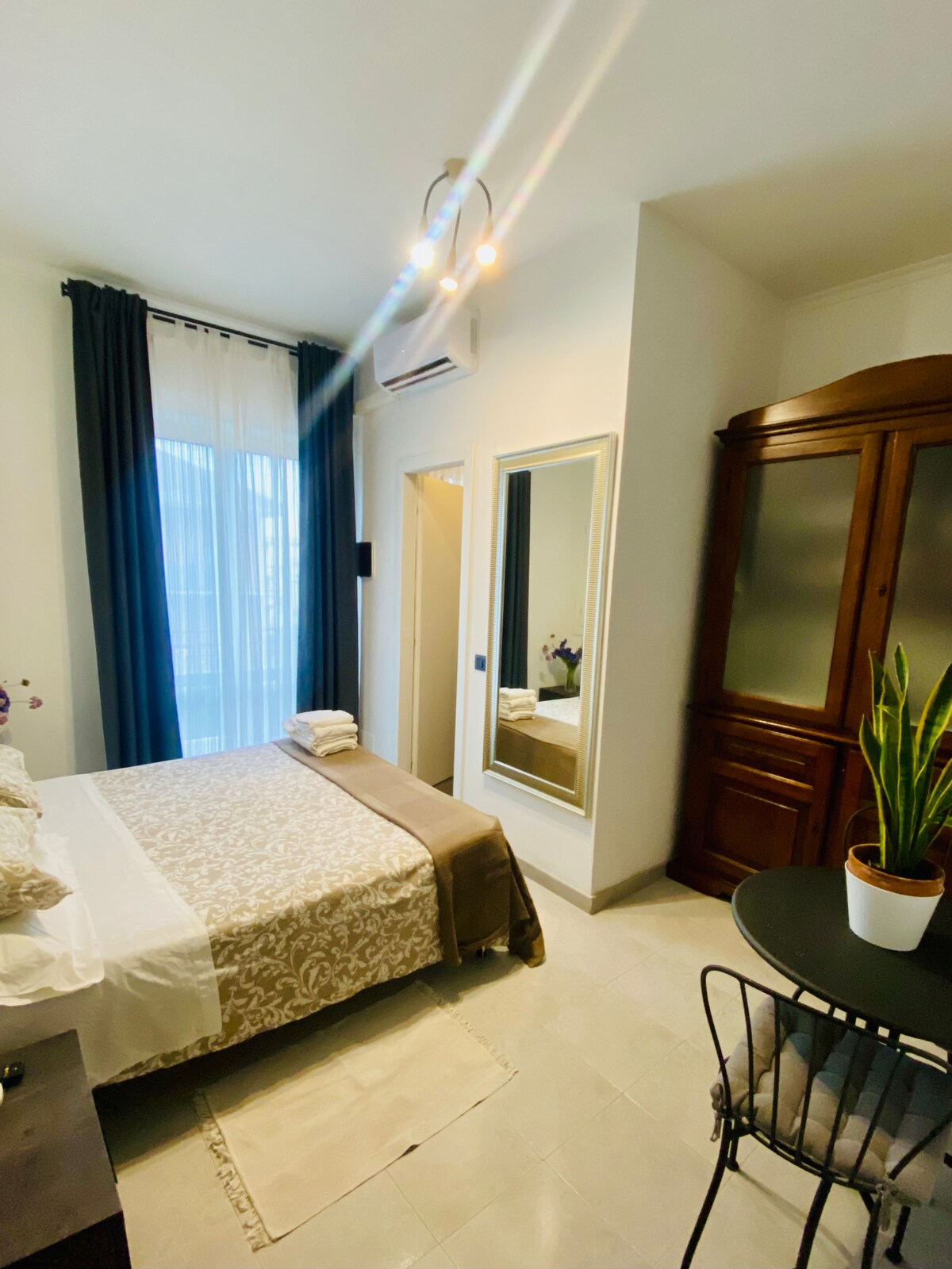 We're just 20 minutes from Rome. This fully renovated apartment in Bagni di Tivoli is bright, centrally located, and surrounded by greenery. It's 200 meters from the renowned thermal pools and 400 meters from the train station. It's 5 km from Hadrian's Villa, 15 minutes from Tivoli, with its world-famous villas and fountains (see Guides). About 25 minutes by train or bus from Rome, and 20 minutes by car. Equipped kitchen: induction stove, microwave, coffee maker, and condiment supplies.