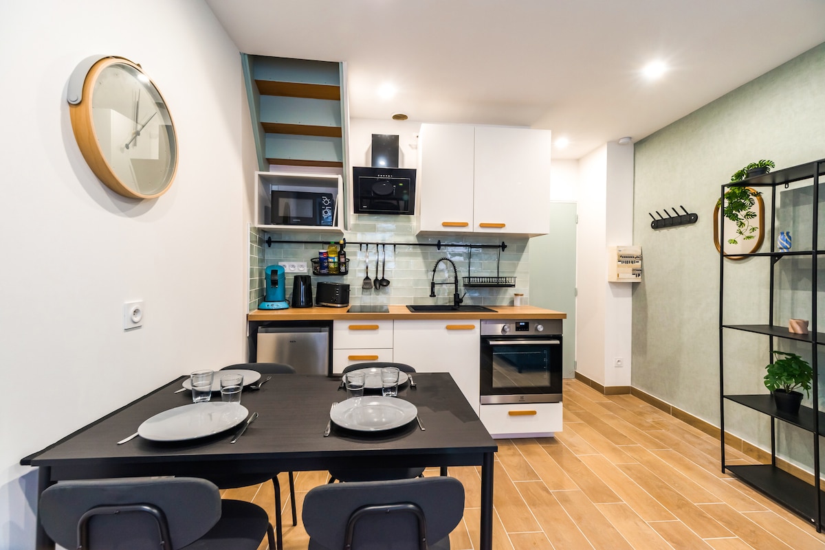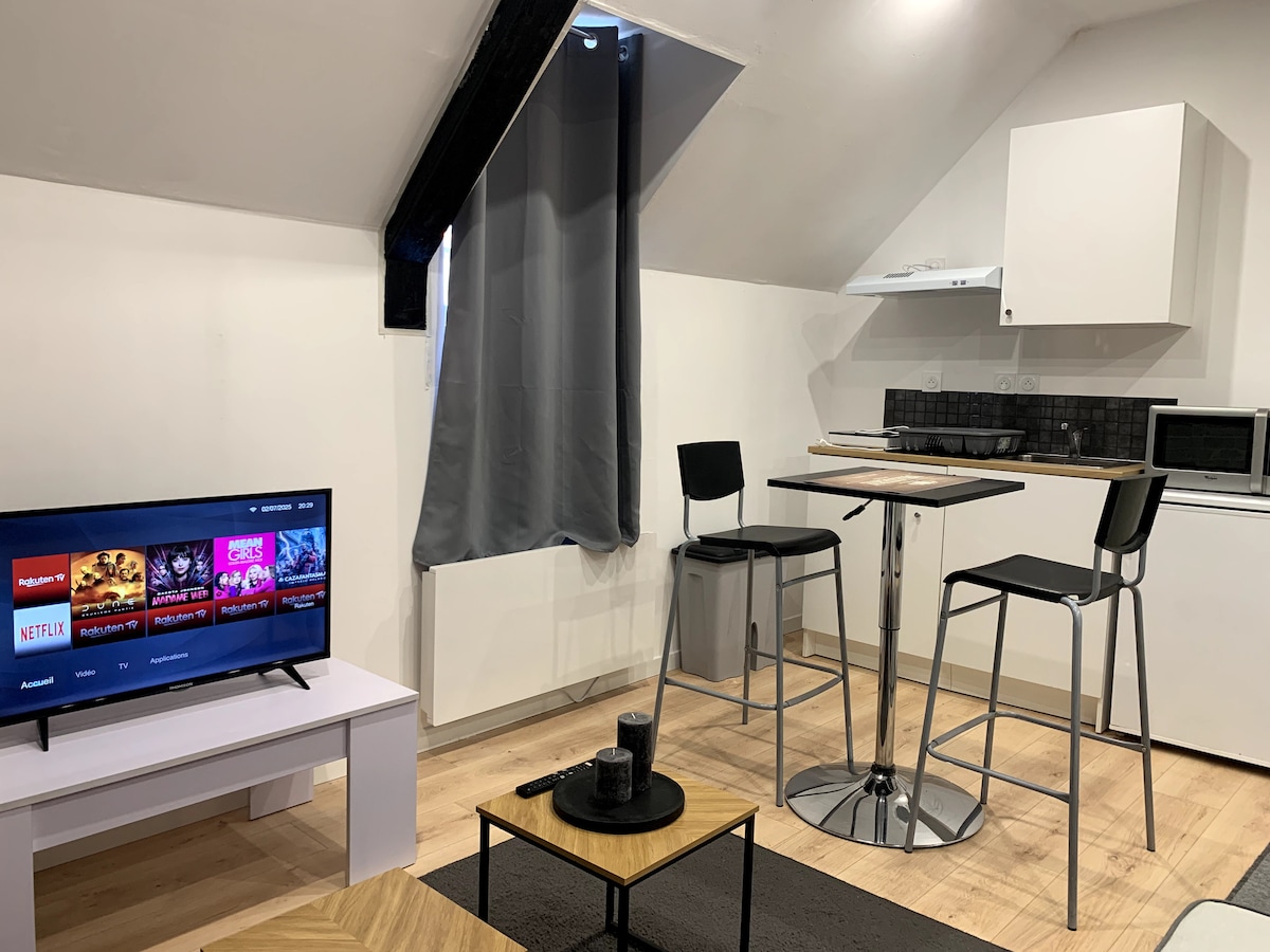 Cozy studio in the center of Guingamp, 50 m from the central square in an interior courtyard of a quiet and secluded property. It consists of a living room (sofa-armchair relax- desk-TV- coffee table) a kitchenette (fridge, microwave, induction hob, Nespresso and Italian coffee maker, toaster, teapot...) bedroom with 140 x 190 cm bed, on mattress and a bathroom with hanging toilet. Self check-in and check-out with lockbox. 10-minute walk from train station, UCO, EAG stadium, Lycee.