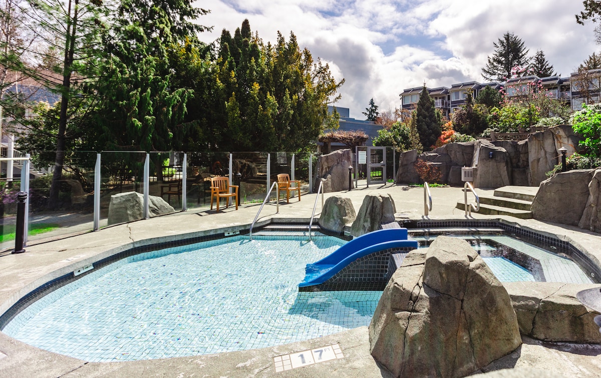 Close to UBC, 15 min drive Downtown, 5mins to Beaches, beside groceries & coffee shops in beautiful Wesbrook Village! You’ll love my place: outdoor space, quiet neighbourhood. Place is great for couples, adventurers, business travel, and families (with kids). Fully stocked with a Chefs Kitchen, Big TV, all you need feel at home after exploring! Secured Underground Parking is included. EV charging available. Ground Floor Unit out the door to beauty and adventure. New Portable Air Conditioner!!