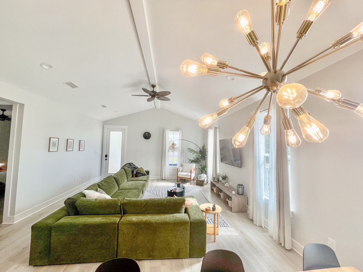 ☀️Welcome to The Sunnyside Suite, a luxe and stylish tiny home situated in the heart of Gulfport. This brand new home is perfect for those seeking comfort, convenience, and cleanliness. This high-end home features a plush queen bed, full kitchen, 50 inch TV, and a steamy rain shower. Step outside into the quiet and private yard, beautifully lit by warm string lights. Located near restaurants, casinos, and beaches, the Sunnyside Suite is the ideal choice for a tranquil and unforgettable getaway