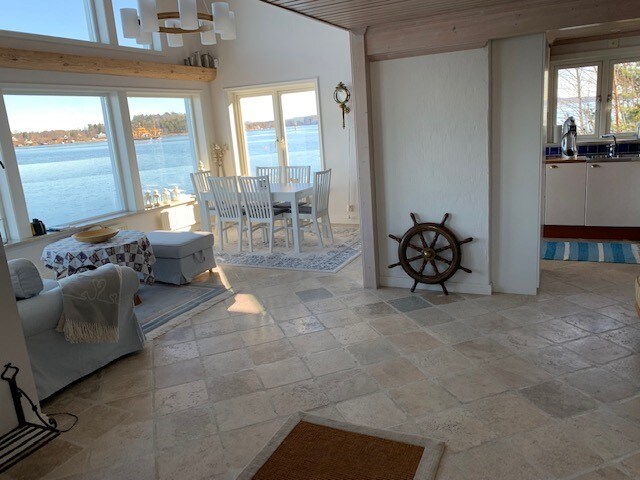 This lovely Oceanfront villa, suitable for 6 people, is a luxurious place and it has a splendid location and is directly situated by the archipelago of Stockholm/ Gustavsberg in Värmdö. Big sun deck connected to the pier..From the indoor sauna you easily reach the pier via the outdoor deck and staircase, perfect for summer as well as winter. Possibility to rent a smaller boat upon availabily for trips in the neighbouring area as well as good for waterskiing and tube.