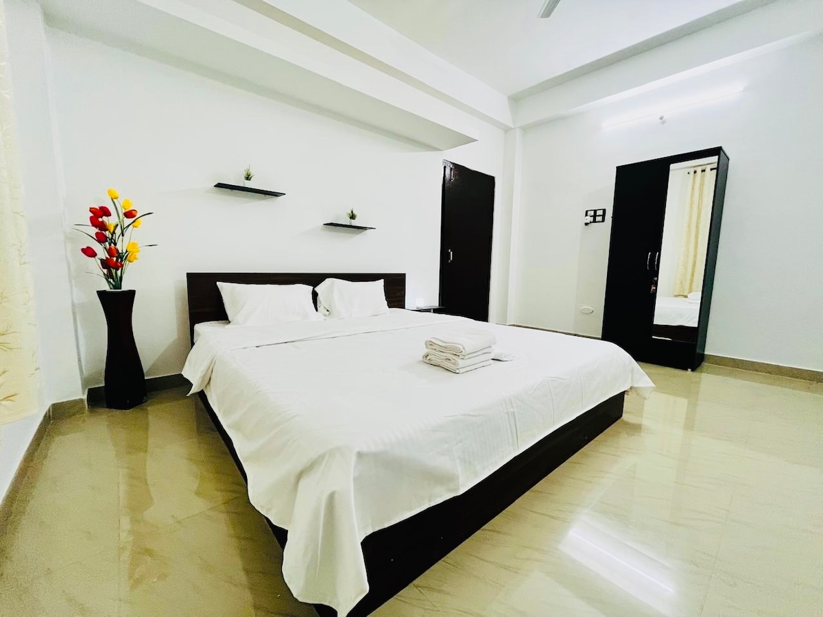 Welcome to Serenity! This charming 1BHK is nestled in a beautiful residential area, offering the perfect blend of comfort and tranquility. It is situated on 1st Floor (No Lift). Whether you're a solo traveler or with family or business guest, you'll love the peaceful ambiance, interiors, and convenient location. Relax in a cozy living space, enjoy a fully equipped kitchen, and unwind in a comfortable bedroom - experience a home away from home!