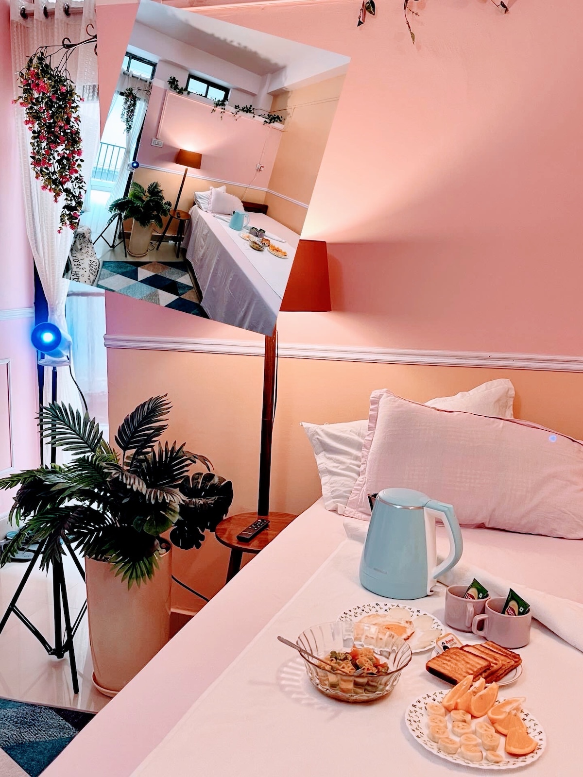 'Snuvia’ by Periwinkle is a cozy, Scandinavian-inspired homestay tucked in the heart of Guwahati. With calming tones, a handcrafted bed and minimalist charm, it offers a restful retreat for solo travelers, couples, and families alike. The thoughtfully designed kitchenette is fully equipped, makes light cooking effortless, while the quaint breakfast bar invites you to sip coffee, journal, or enjoy quiet moments over a homemade meal. Snuvia is where every corner whispers comfort.