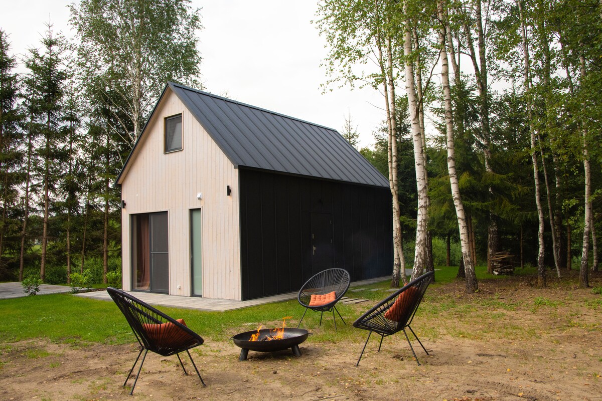 Unlimited access to the Jacuzzi and sauna is included in the price. Wabi Sabi forest cottage for max 4 people in the forest by the lake in Kashubia. We offer a two-storey cottage of about 45 sq m with two separate bedrooms, a shared living room with kitchenette, dining room, bathroom and a large terrace surrounded by forest. The plot on which the cottage stands is about 500 m2 and is fenced. In addition, on the large wooden terrace we have a Jacuzzi and a sauna for the guests of the cottage only. Our cottage is open all year round, it has heating and a stove. 150m to Lake Sudomie.