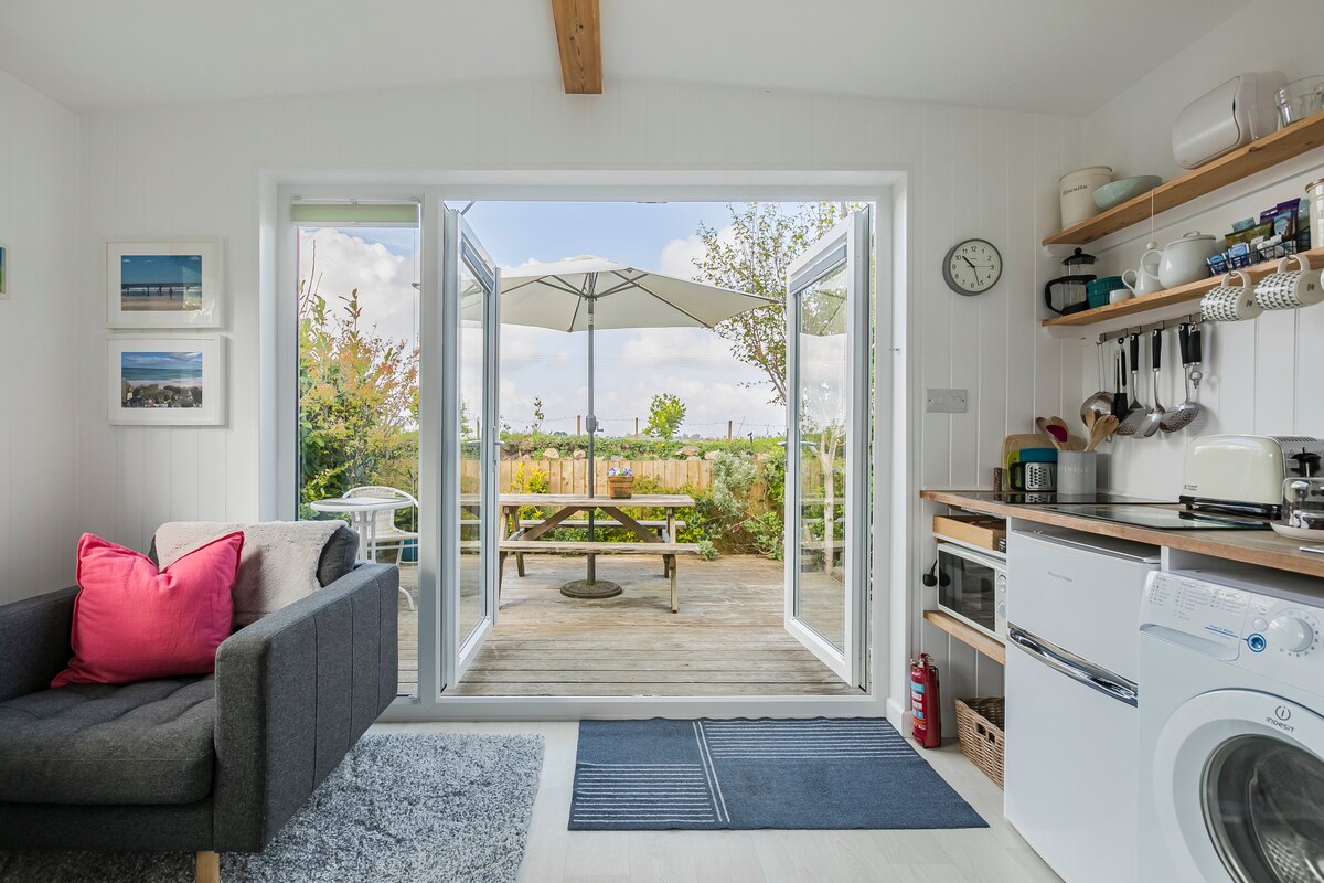 The Bolt Hole is a purpose built studio apartment, perfect for couples. 5 minutes walk to Hayle railway station , Foundry Square with its shops and restaurants . Close to the stunning Gwithian and Godrevy surfing beaches. The spacious open plan has a fully fitted kitchen, ample comfy seating,a breakfast bar, smart t.v.,WiFi and a separate bathroom with walk in shower. Outside there is ample private parking and a patio area with seating that affords the afternoon and evening sun.