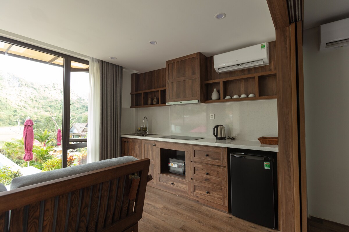 This Junior Suite is part of YÊN Hidden Valley, an accommodation nestled in nature, with a swimming pool and overlooking the limestone mountains as well as the butterfly valley of Cat Ba, an off the beaten path area known for rock climbing and the hordes of butterflies in April & May. It's a perfect place for those who want a break from the hustle and bustle of the city and enjoy the peaceful sounds and gorgeous views of Mother nature.
