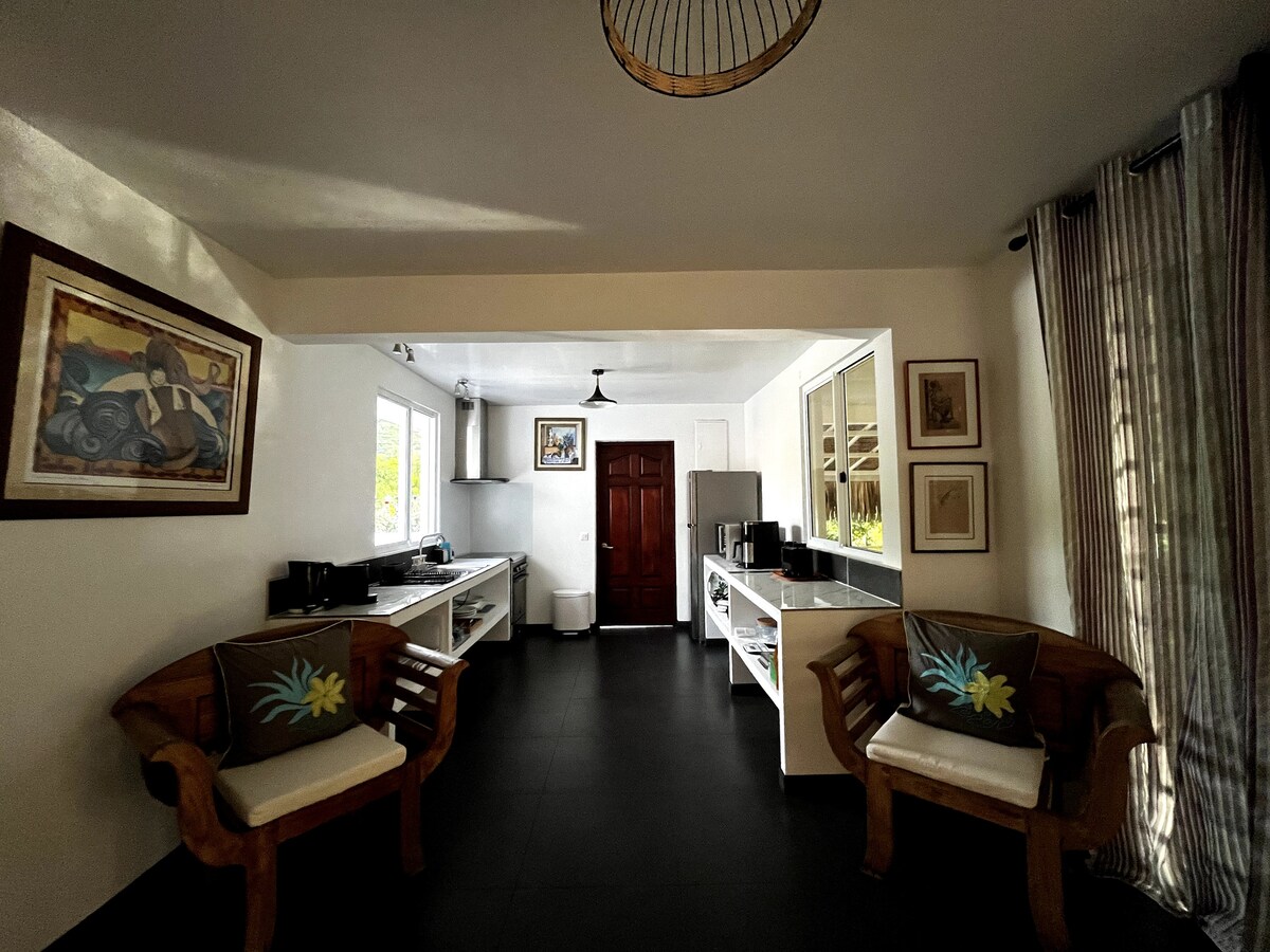 You will stay in the heart of a modern apartment overlooking a tropical garden located by the lagoon. The residence is a one-kilometer walk from the shuttles and ferry. Bike rental, supermarkets, restaurants are a few minutes' walk away. You will have access to the seaside, or you can directly snorkel and discover the lagoon with our kayaks available for free. Equipped with everything you need for a comfortable stay.