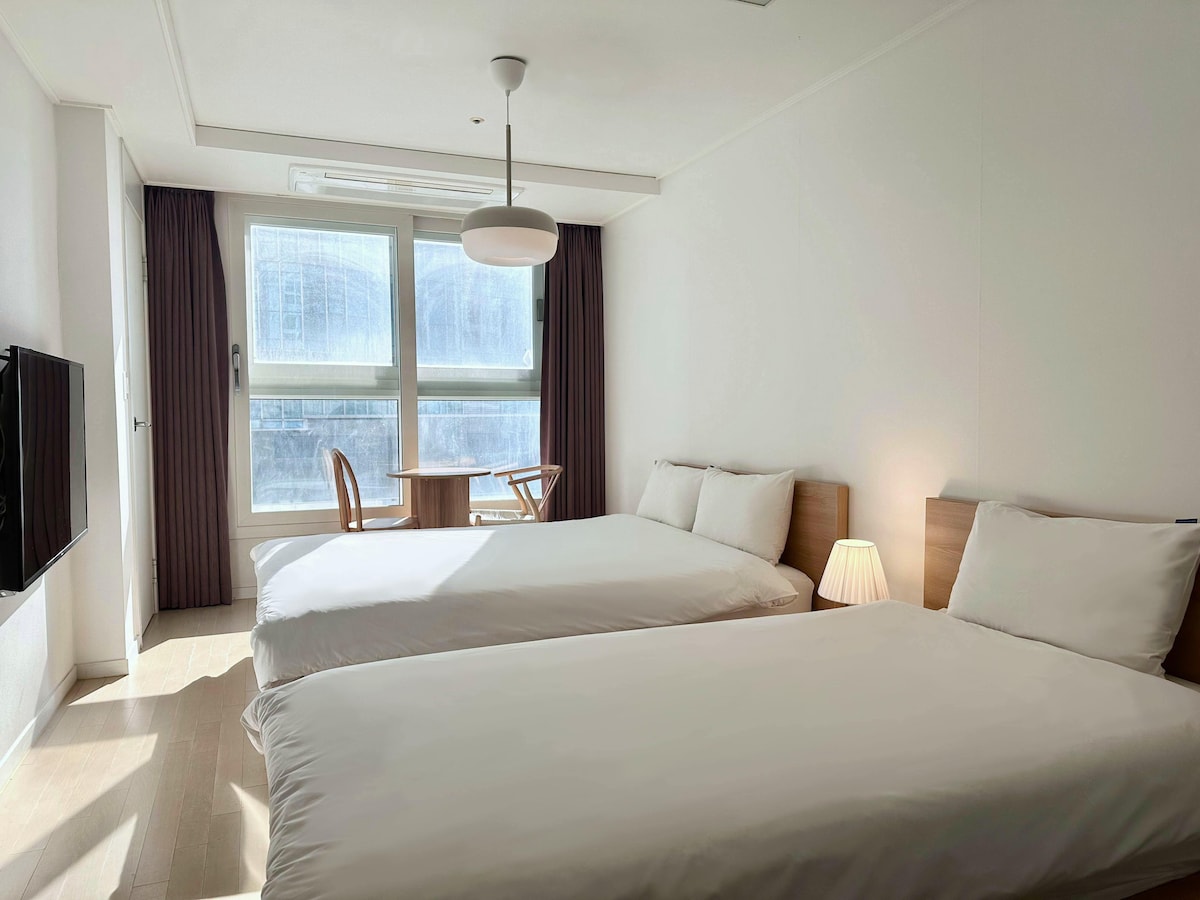 This is the signature terrace room of ThePlace34, located in the center of Haeundae. It is a 5-minute walk to the beach with a super high-rise ocean view, and the subway station is 3 minutes away. Free luggage storage before and after check-in makes your travel schedule much more relaxed. You can enjoy a comfortable rest with a water purifier in all rooms and Netflix and YouTube viewing. As a legal accommodation, you can stay with peace of mind. ✅️Check-in / Check-out: (4:00 PM / 12:00 PM)