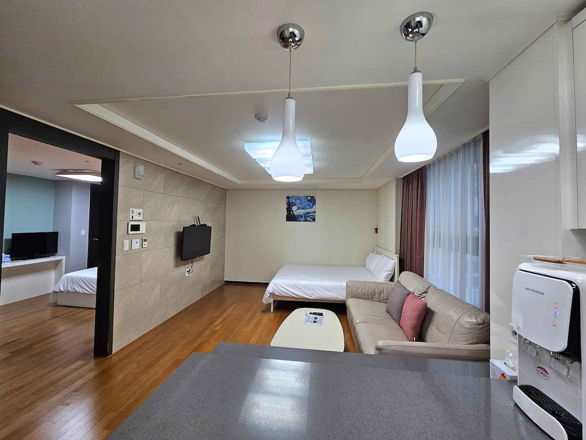 ※ This is a legal accommodation registered for the accommodation business. (The location and design of furniture and accessories may vary slightly.) ※ Please book with the exact number of people. The basic accommodation fee is for up to 2 people, and up to 3 people can stay. Additional charges will be reflected from 3 people. ※ It is safe because it is a front door lock password that only guests can use during their stay. ※ Cleaning of the living room incurs costs Haeundae's famous Mipo Beach Train (walking distance) to Cheongsapo, Songjeong Train Travel Gunnam Road, Aquarium, The Bay 101, Dongbaek Island, Haeundae Oncheon, Dalmaji Pass, and Haeundae Traditional Market are within walking distance. Clubdi Oasis Water Park & Spa 35% discount, Aquarium discount, yacht tour discount coupon provided Access to Haeundae Beach within 1 minute (across the street) 24-hour free luggage storage (available even after check-out) Free parking space, Netflix, Wi-Fi available Free use of fitness center and golf driving range Close walking distance to Haeundae subway station, intercity bus terminal, and city bus stops