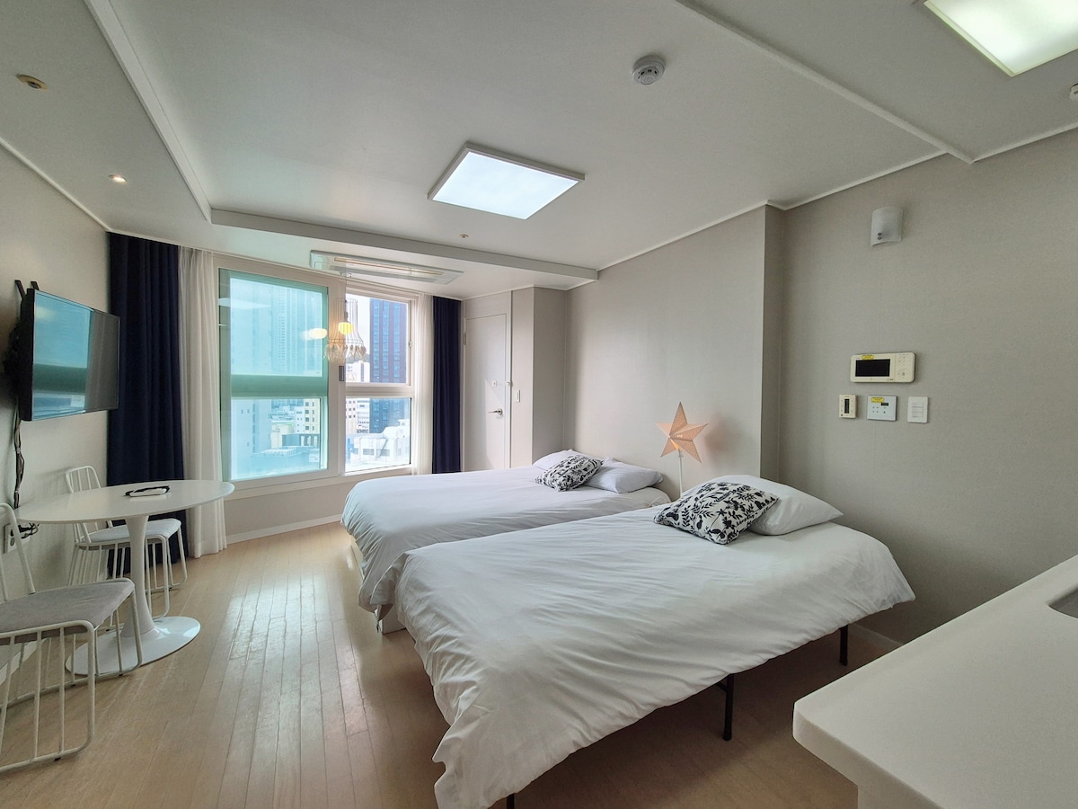 🎗Comfortable and familiar studio Create 🎗memories with family, lovers, business trips, or friends 1 🎗queen bed. 1 super single bed We will paste the bed when you come 🎗with your children. Please let us know in advance ^ ^ Club 🎗Dioasis 5-minute walk Mart 5 minutes 1-minute walk❤ from Haeundae Beach This space can accommodate❤ up to 4 people. ❤Dalmaji Mipo Restaurant Haeundae Hot Spring Street Haeundae Traditional Market Dongbaek Island Marine City The Bay 101 Yacht Pop Up Restaurant Wine Bar Star * * Coffee shop cruise ship, etc. ❤Airport Bus Bus Stop (Hot Spring Intersection) 3 minutes on foot, Haeundae Intercity Bus Terminal, Subway Line 2 (It is easy to use public transportation on foot, and it is close to the accommodation. You can park ❤ for free all day, and if you give us your license plate number, we will register it in advance. 🎀Netflix YouTube is not supported. I'm sorry.