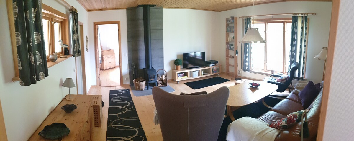 Newly renovated and tastefully decorated apartment of 73 square meters at Frösö Church with magnificent views of the Jämtland mountain landscape. Here you are close to beautiful nature trails, golf course and attractions such as Peterson-Bergers Sommarhagen and Frösö Park SPA. It is a 7-minute drive to Åre Östersund Airport and 7 km into Östersund city center. Good bus connections are available with lines 3 and 4. The bus stop is only 100 meters from the apartment and ICA is 2.5 km away at Valla Centrum.