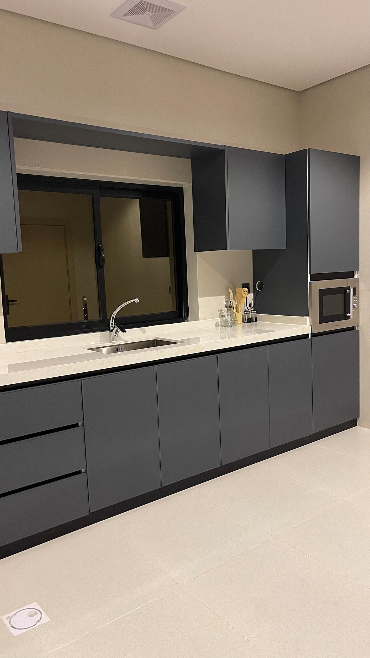 Enjoy the distinctive designs of the apartment, which consists of a spacious bedroom with a master bed, carefully designed with love to suit the aspirations of our valued guests. We have provided you with 5G internet to enjoy watching your favorite movie on a 55-inch TV. It is located 7 minutes from the airport and 4 minutes from Al-Othaim Mall. You can also spend a pleasant time in the West Corniche Garden, which is a 5-minute walk away