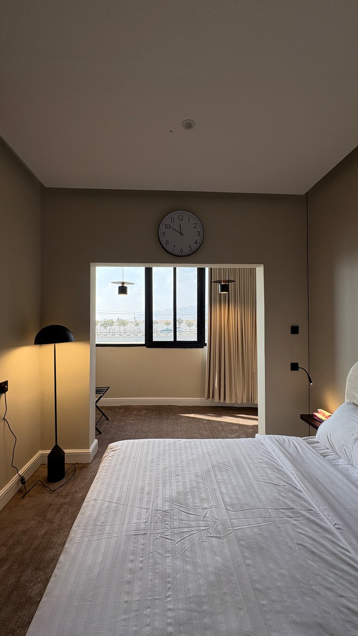 Modern hotel studio with self check-in and a view of the Akda Mountains