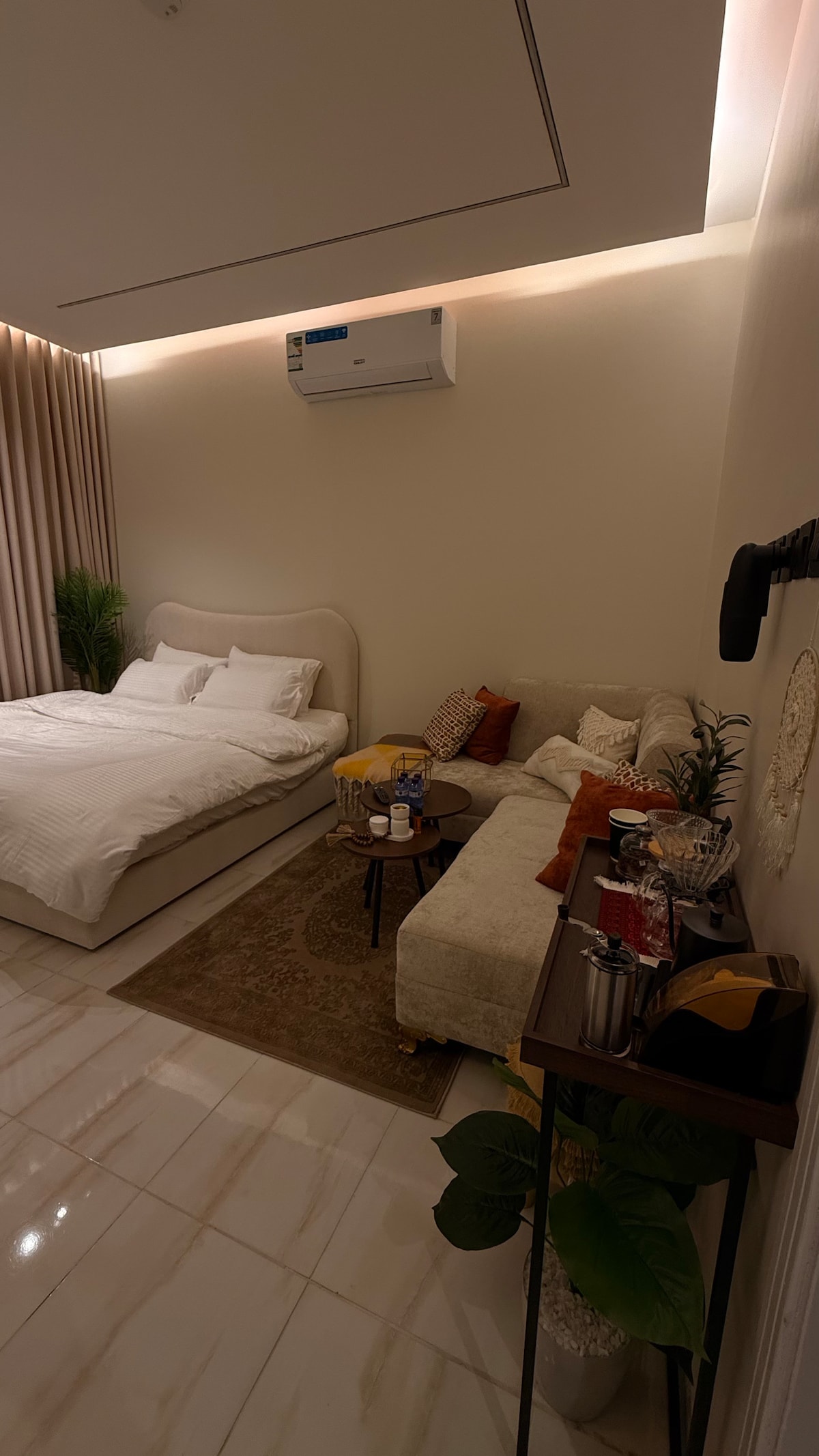 A studio in a special location and a lively area directly behind Al-Othaim Mall, the largest mall in Hail, and you can go to it on foot and near Fahad Al-Arifi Street, where there are the most famous restaurants and cafes, and close to all basic services. It is 9 minutes away from Hail Airport by car. Free internet service and a smart TV with all applications are available. There is a microwave, a refrigerator and a hotel kettle