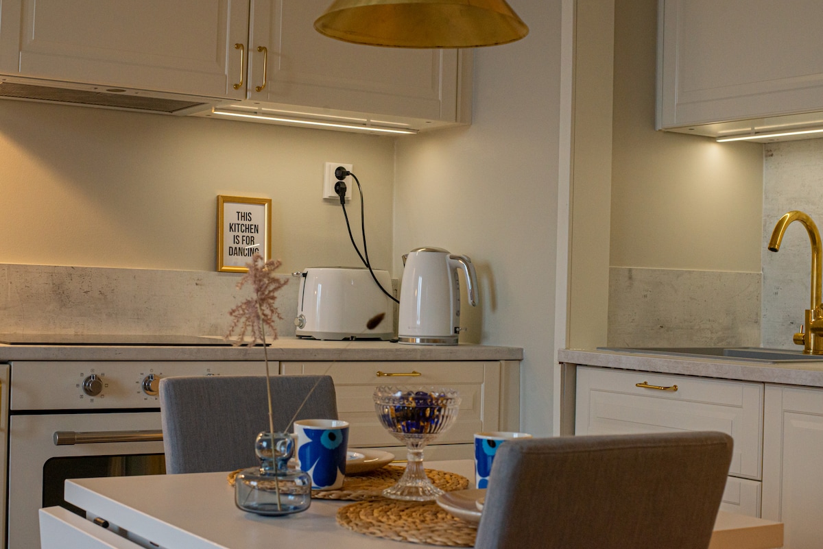 A modern and stylish one-bedroom apartment, located above the Mall of Tripla shopping center. The apartment features a well-equipped kitchen, fast Wi-Fi, laundry facilities, and all the essential amenities to ensure a comfortable stay, whether short or long. Are you visiting Helsinki for business or just a quick getaway? Whatever the reason for your stay, you are warmly welcome to enjoy this apartment—also for longer stays if needed!