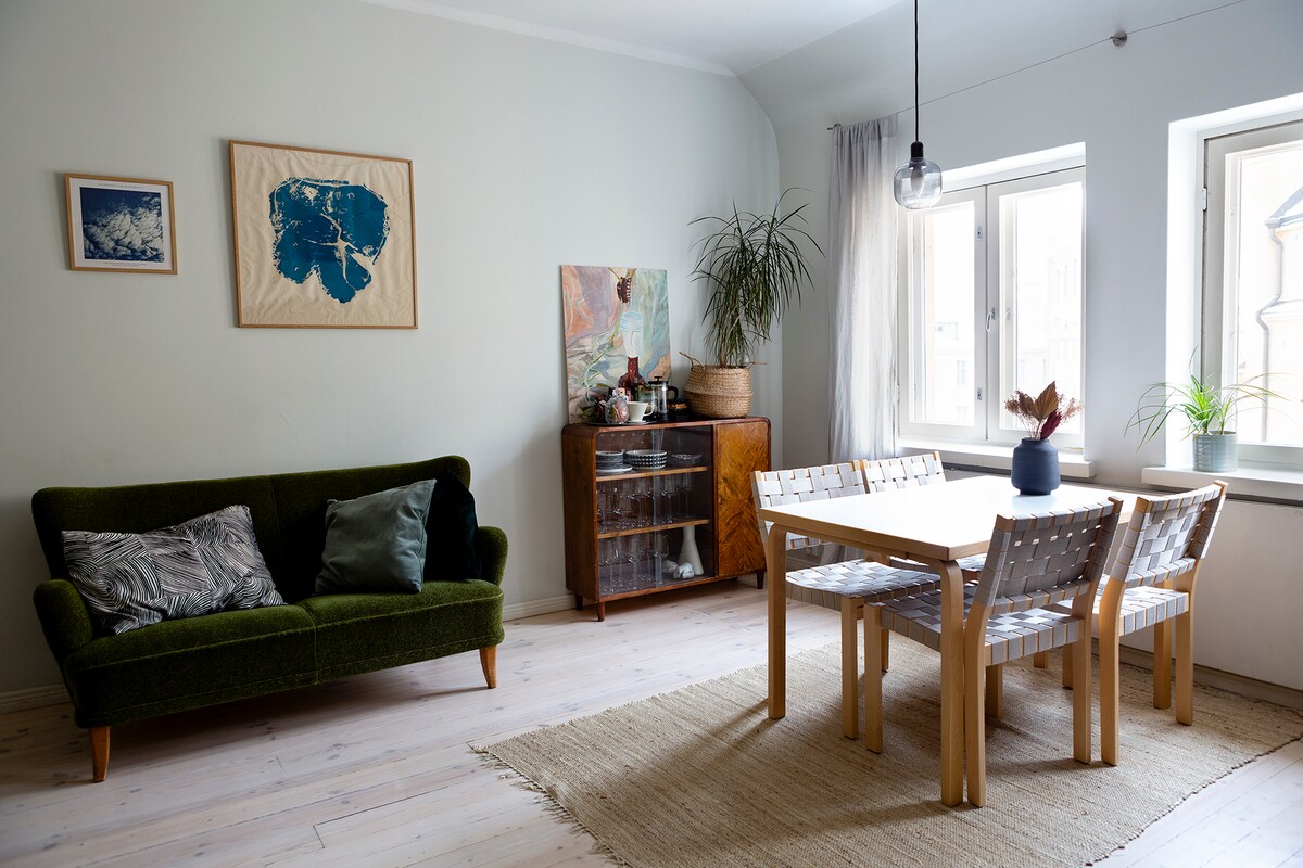 Pink dream apartment in an Art Nouveau building with a completely unique atmosphere 💗 Stunning architecture: pillars, decorative moldings, shiny cassette ceiling 💗 Stylish interior design with vintage and design treasures 💗 Well-considered, genuine and high-quality materials, such as marble and wood 💗 High-quality and praised bed, blackout curtains 💗 Fully equipped with, for example, stylish dishes 💗 Central location behind Sörnäinen metro station, close to buses and trams 💗 Free parking space in the garage