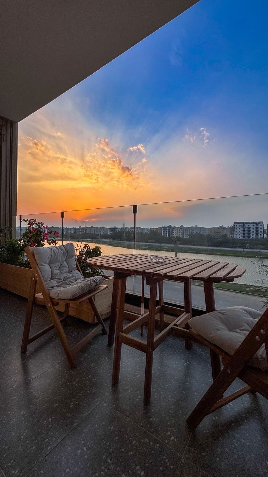 M.K1 Residence - Apt Near the Bridge 3 Bedrooms Fully Furnished 2 Bathrooms 1 Toilet 1 Living Room With A " 75" LG UHD Smart TV Wi-Fi "Fast Fiber Optic Internet" 5G Fully equipped kitchen Dining table Smart Entry Balcony with outdoor seating شقة بالقرب من الجسر 3 غرفة نوم 2 دورات مياه 1 مرحاض LG UHD Smart TV "غرفة معيشة مع شاشة "75 إنترنت (ألياف ضوئية) سريع مطبخ متكامل طاولة طعام دخول ذكي بلكونة مع جلسة خارجية