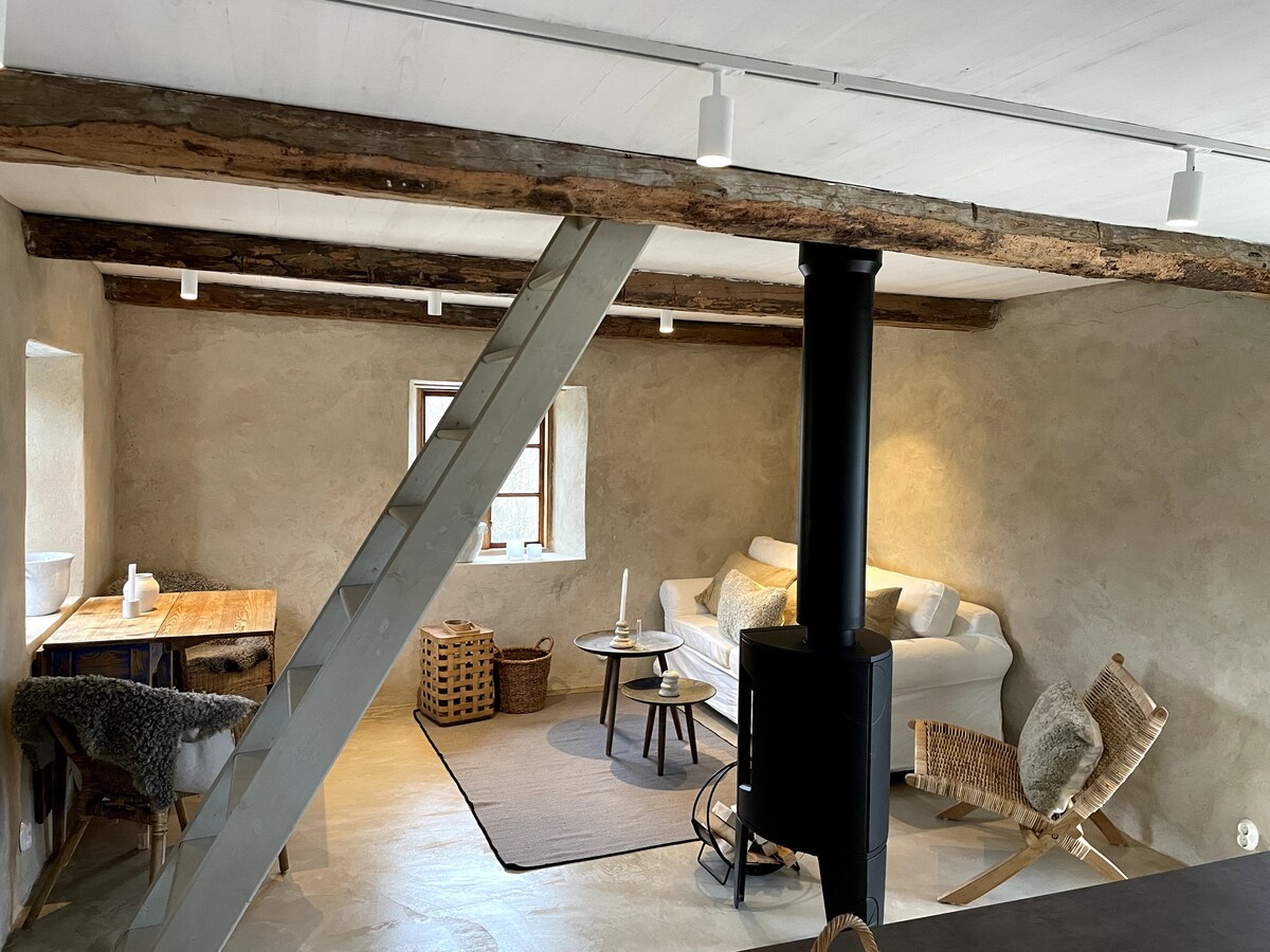 Welcome to charming studio, 38 m2 with beautiful lake view from the balcony. Rich bird life, foxes and deer can be seen with the binoculars. Take the bikes down to the harbor. Enjoy our wood-fired sauna and fall asleep in the beautiful bed. We offer fresh air, silence, quiet and good, clean drinking water from the tap. Excellent cycling/hiking trails in beautiful nature and cultural landscapes with medieval buildings. 50 km to Visby. 13 km to Fårösund. 5 km to bus stop. Car charger is available. You take care of the cleaning yourself.