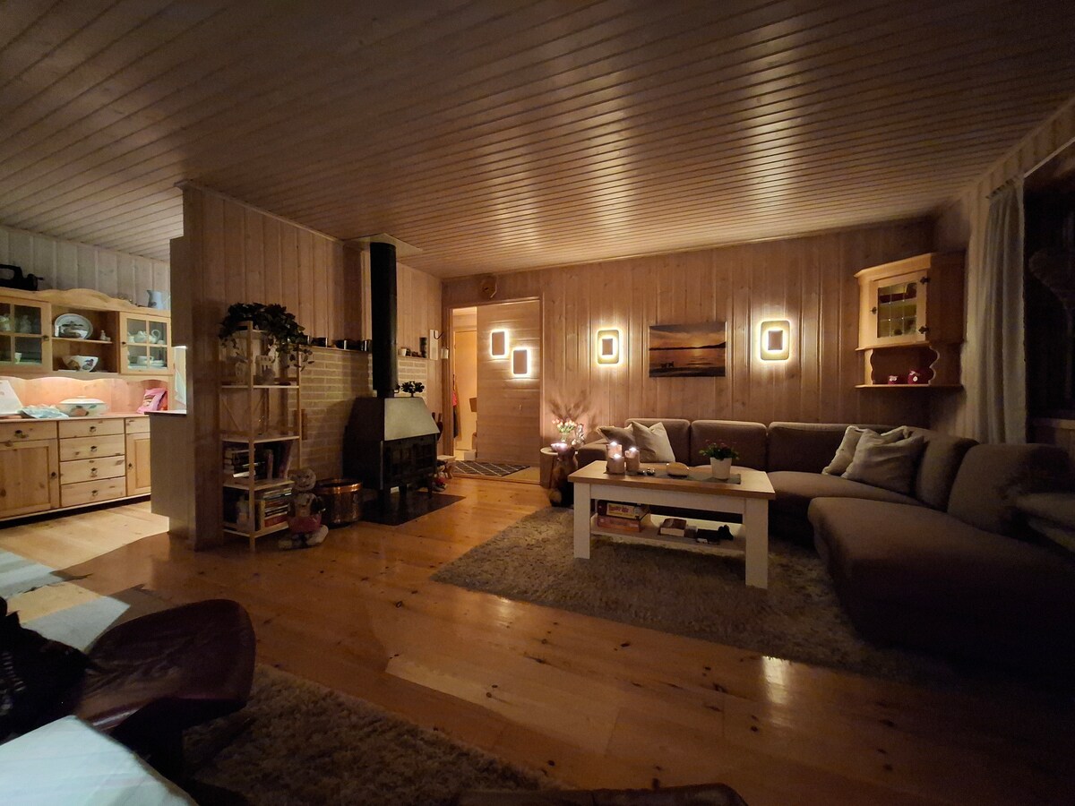 Cozy house surrounded by breathtaking Norwegian nature. Winter time you have a great chance of seeing the aurora borealis. Summer you can fish salmon and trout 100meters from the house, and you're surrounded by mountain's that can give you life long memories