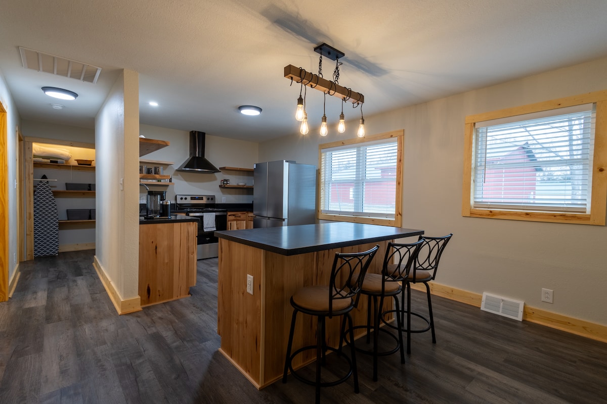 The Carriage House apartment is located behind the historic home we've restored in Hamilton. The property is nestled one block between popular Main Street shopping (featuring the Missouri Star Quilt Co. shops) and the Missouri Quilt Museum. Everything is within easy walking distance from this beautiful, newly built apartment. Plus, you'll enjoy plenty of space, a full kitchen, free wi-fi and free laundry on site. We can't wait to welcome you to your home away from home!