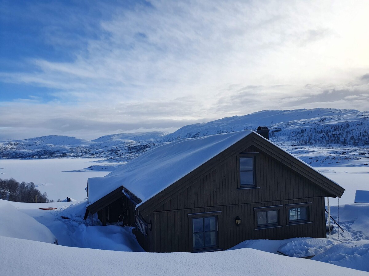 Scenic location on beautiful Hamlagrø overlooking the mountains and Hamlagrøvatnet. Very child-friendly. Large well-equipped kitchen. Prepared cross-country ski trail just outside the door during the season. Otherwise, many opportunities for mountain skiing and top tours. Large plot with a toboggan run and possibility for play. Trampoline in summer. Many hiking opportunities in summer for both the experienced and those who want well-marked hiking trails. Great bathing water and pools/streams for the kids to play in. Fishing rod & Sup. Sauna and hot tub.