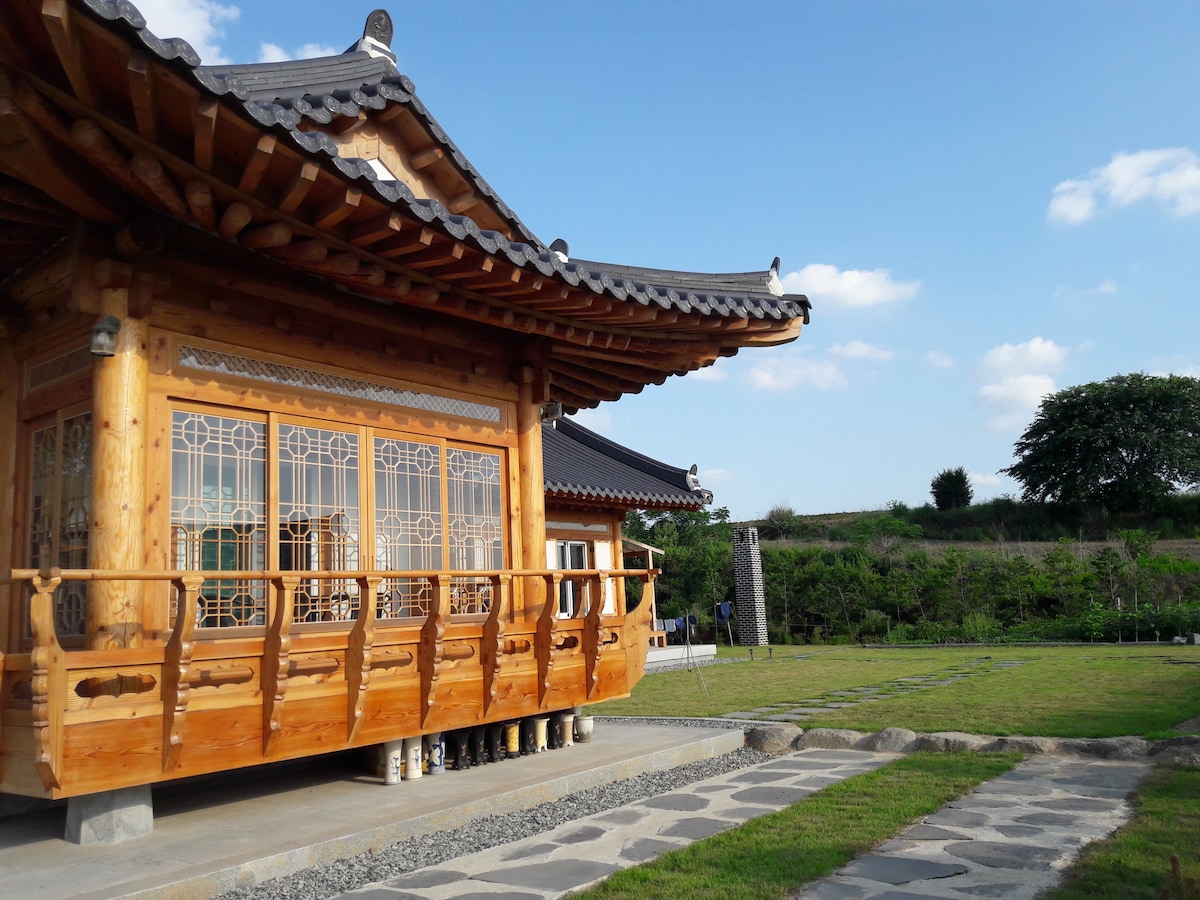 Healing house built with natural ocher bricks and cypress trees and finished with natural paper!! In a spacious garden with beautiful pine trees and green grass Awaken the emotions of children Take time to heal for those who are tired of living in an apartment It's as comfortable and affectionate as my home. Predicting the satisfaction of your party There are plenty of things to enjoy and eat, such as a cost-effective golf course, germanium hot springs, Seonunsa, sea pink mulli garden, and Ungok Wetland. Bedroom 3 (Bed 3) Living room - spacious Comfortable bathroom 2 Rice cooker, microwave, coffee pot, cooking utensils, dryer Salt. Pepper. Sugar. Vinegar. Soy sauce Large grocery store (3 minutes) Free use of barbecue facilities (Charcoal. Do it yourself) What to bring: water, toothbrush, garbage bag ♡ Cleanliness. Disinfection every time ♡ Shared yard with the guests of the separate building Parking available for 2 cars Free parking at the entrance of the village (close)