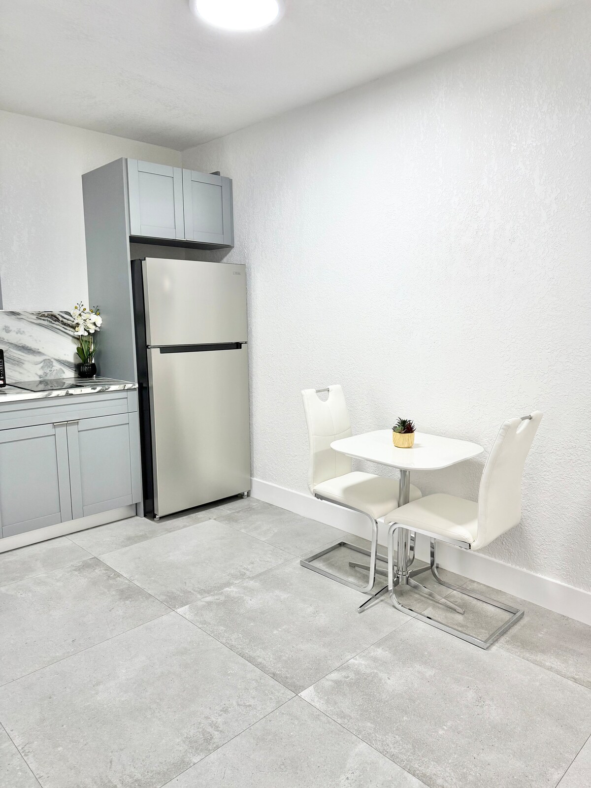 This is a newly renovated mid-century modern retreat in the heart of Pembroke Pines. This comfortable studio is ideal for short term stays, featuring a full kitchen, a beautifully updated bathroom, and a spacious living area. Unwind in a comfortable queen-sized bed and a futon that opens up to a double bed. Includes complimentary coffee, toiletries, fast WiFi, and a smart TV with streaming apps. Immerse yourself in comfort and style in this inviting space in vibrant Pembroke Pines.