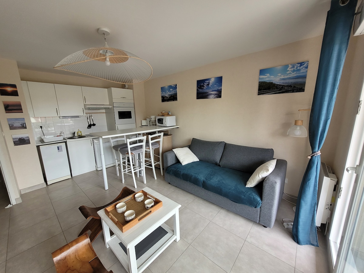 Studio de 35 m2 rénové, résidence agréable, accès direct à la plage. Terrasse face mer de 15 m2, ensoleillement dès l'après-midi et vue exceptionnelle sur la plage et le coucher de soleil ! Place de parking privative TV, internet fibre SDB et cuisine équipées Draps et serviettes fournis Idéal jusqu'à 4 personnes Literie neuve Pas d'animaux Ps: la terrasse est rendue temporairement inaccessible par la présence des travaux (pas de travaux les week-ends ni jours fériés)