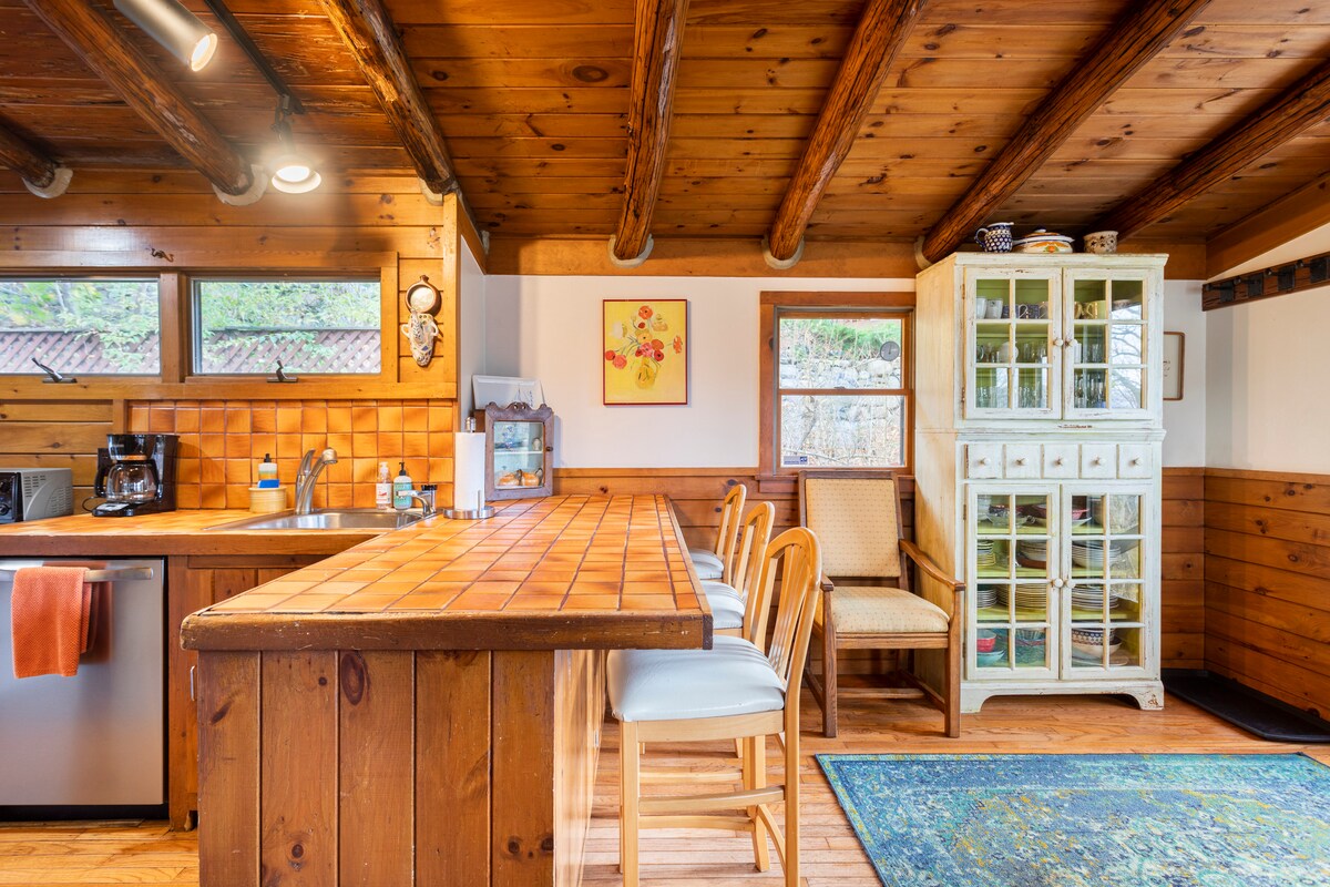 Our property boasts unparalleled views of Greenwood Lake and the mountains beyond. Our private garden features a seasonal waterfall cascading into a lily pond with fish and frogs. The shaded patio offers panoramic views and a gas grill. During the winter months, after skiing at nearby slopes, unwind in the claw foot tub or retreat to the cozy ambiance of our living room, with exposed wooden ceilings, a welcoming fireplace, a smart TV, a record player and board games.