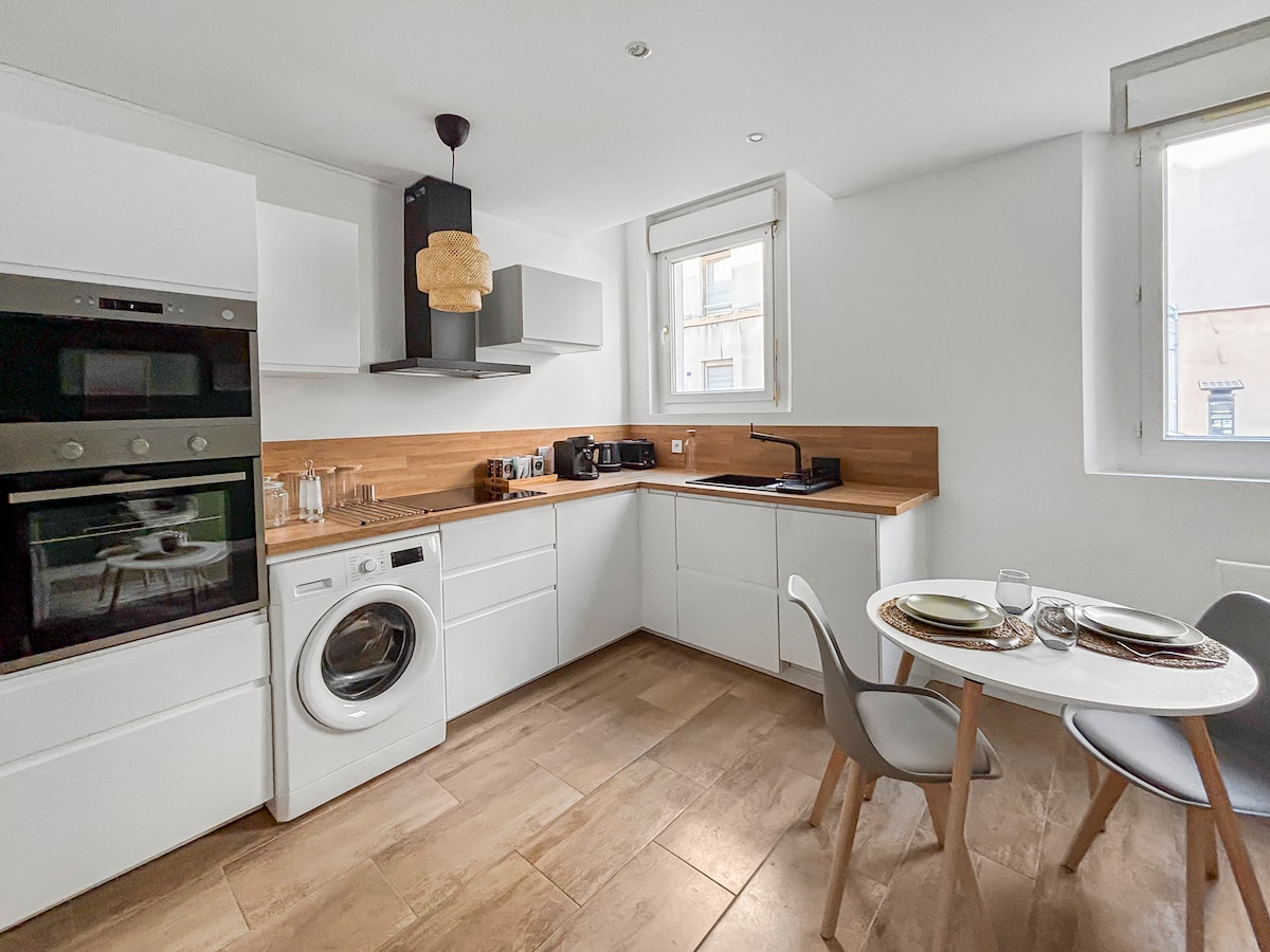 ❤️ Enjoy an unforgettable stay in this bright and modern apartment, ideally located a 5-minute walk from the SNCF train station 👉 A TRUE charm for this quiet cocoon on the top floor without facing or landing neighbors 👉 Queen size double bed 👉 Renovated & fully equipped 👉 The TRAM is just next door 👉 The BEACH 15 minutes by tram Secure 👉 check-in 24/7 👉 A FREE local guide ⭐ Solo or duo, book now to enjoy comfortable accommodation at an affordable price! ⭐